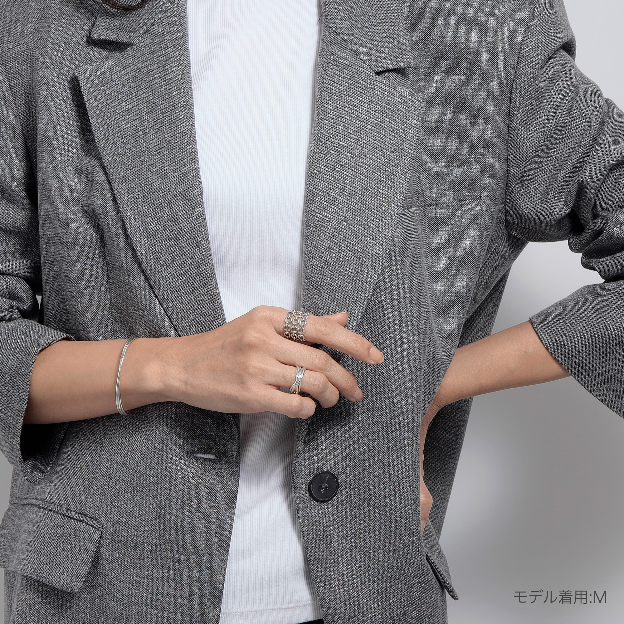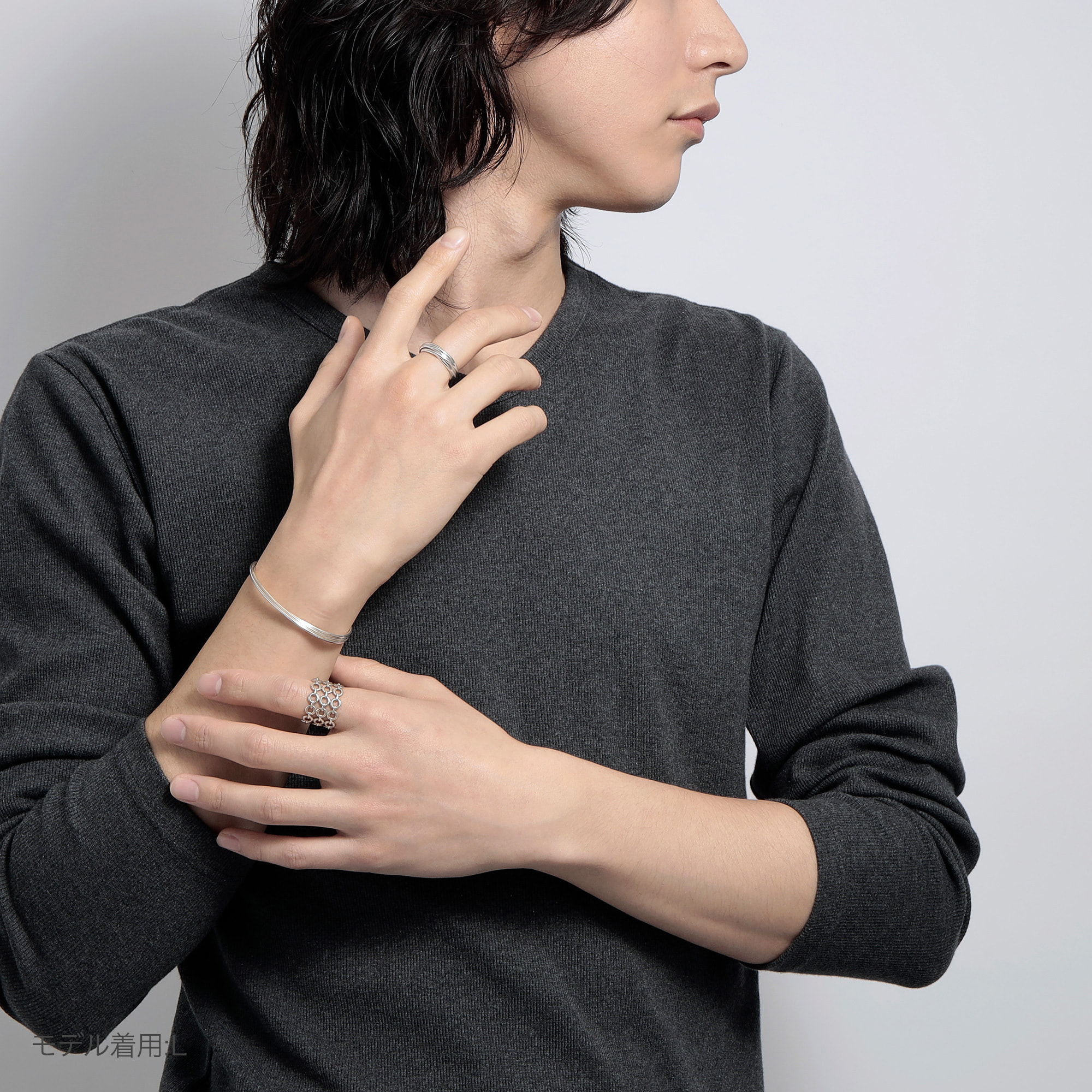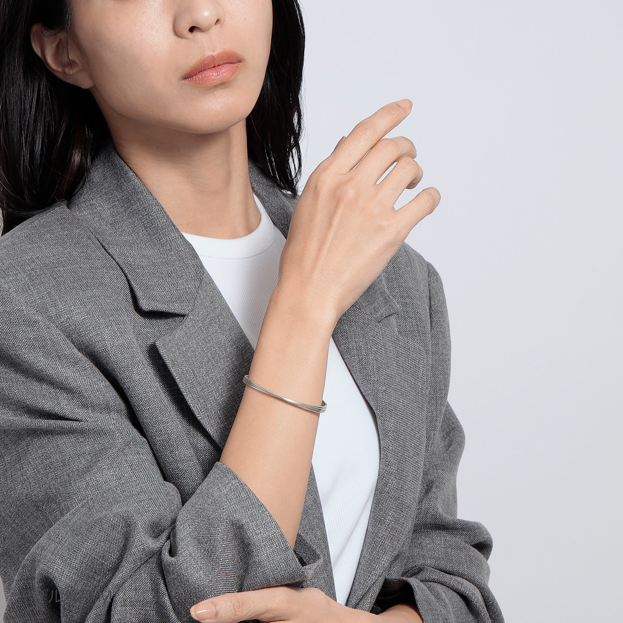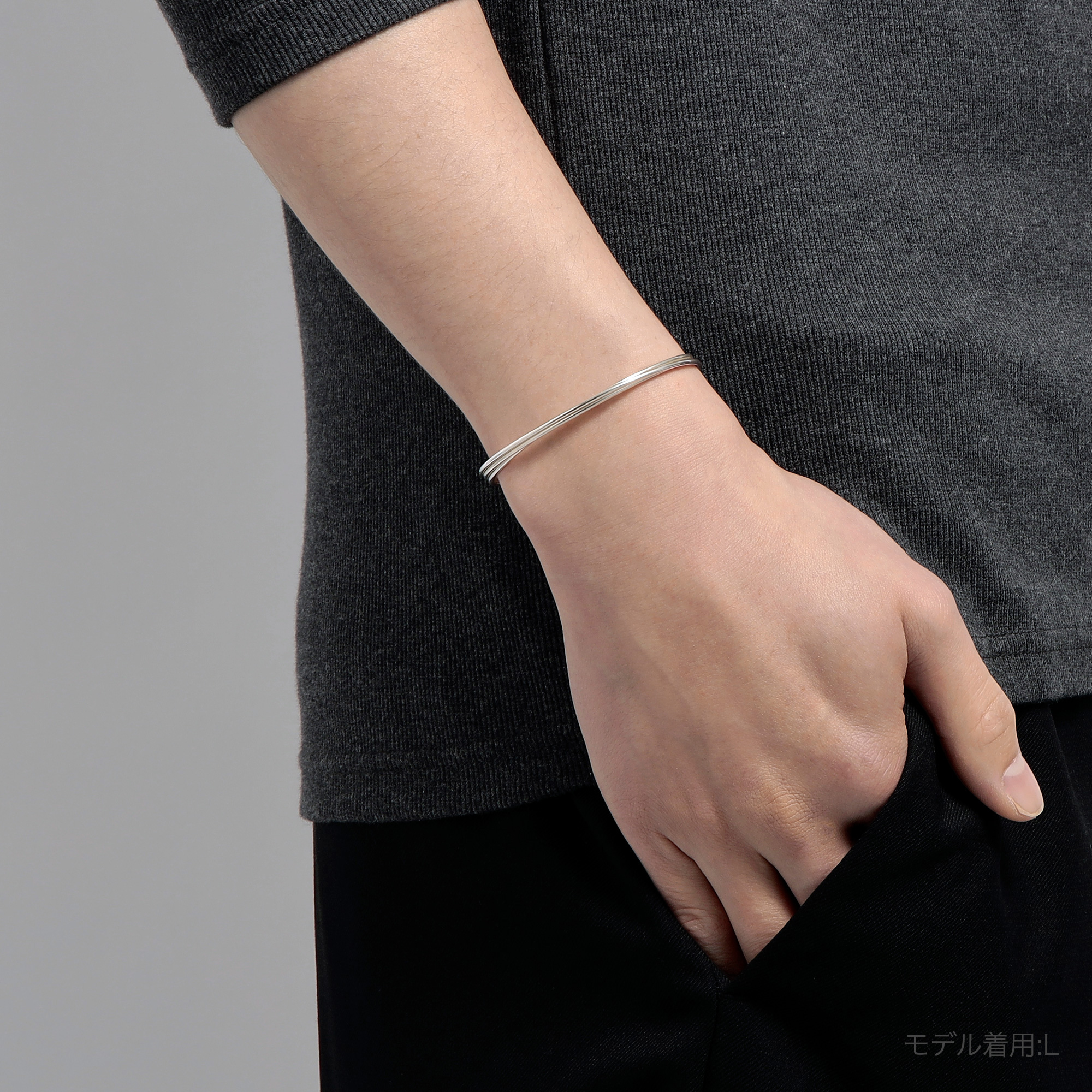 シンプルでベーシックなデザインの中に1箇所ひねりが加わる事で、柔らかな曲線と程よい立体感を感じられるバングル。