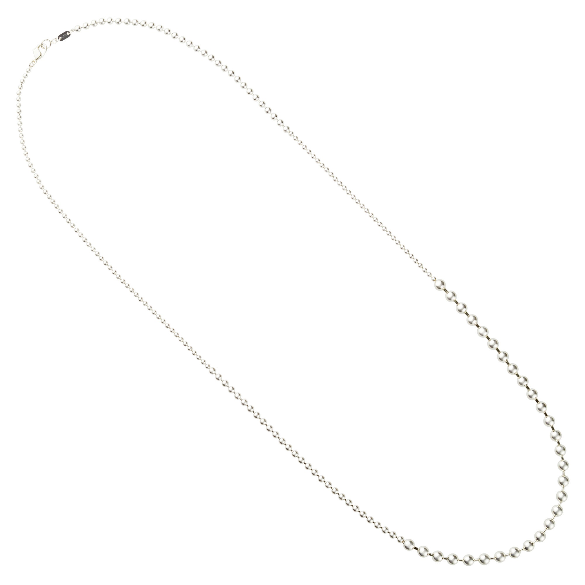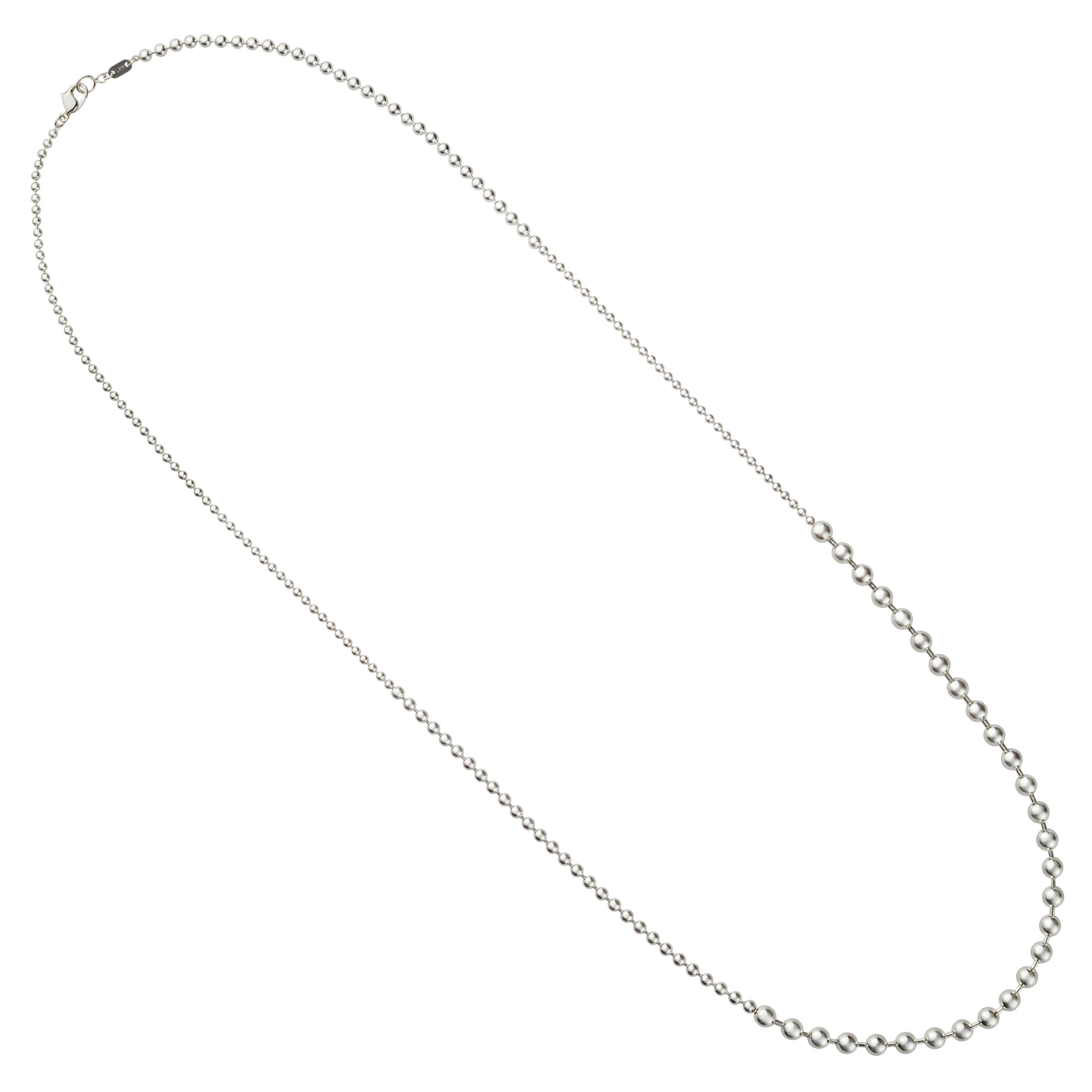 大きさの違うシルバーボールがアシンメトリーに配された、ロングタイプのネックレス。