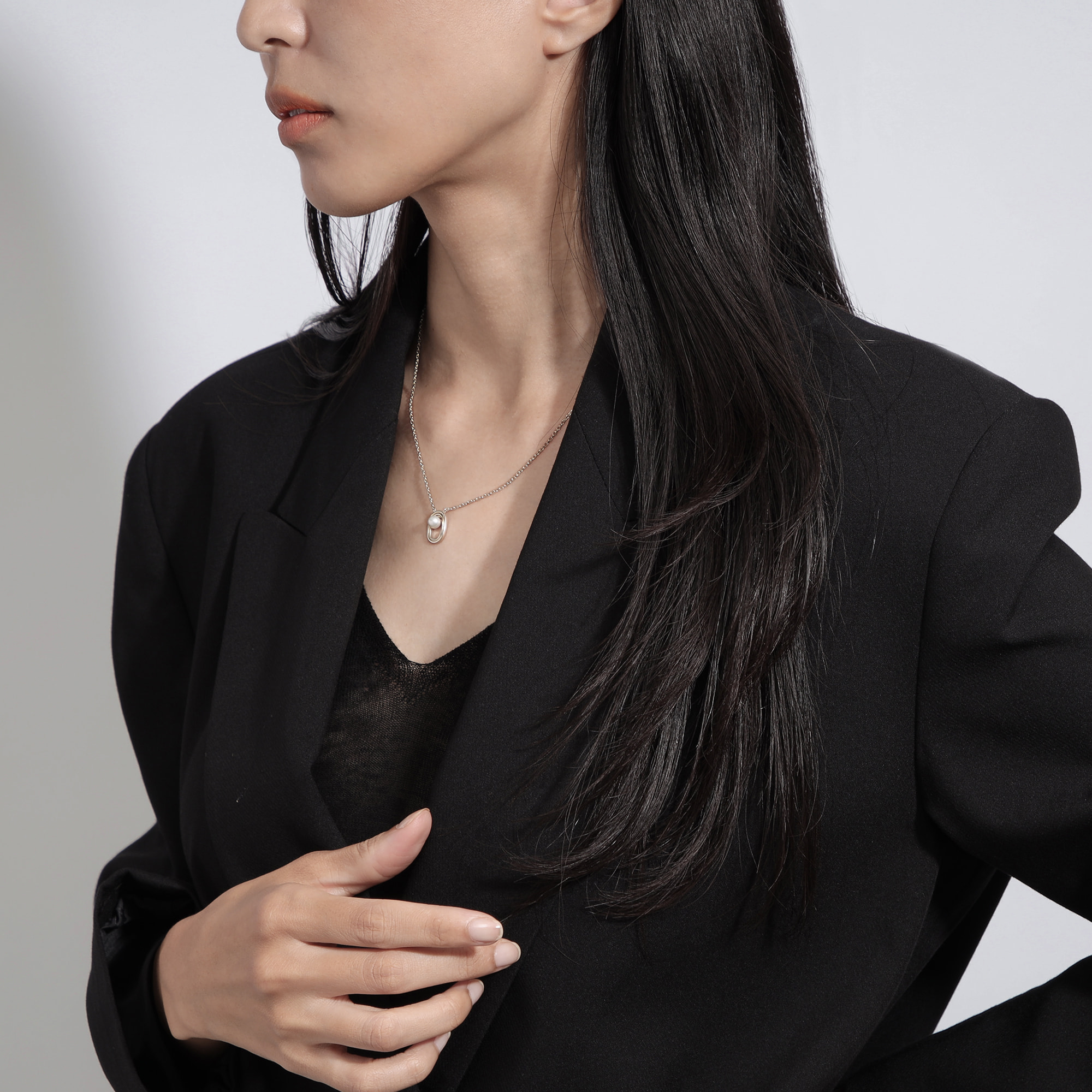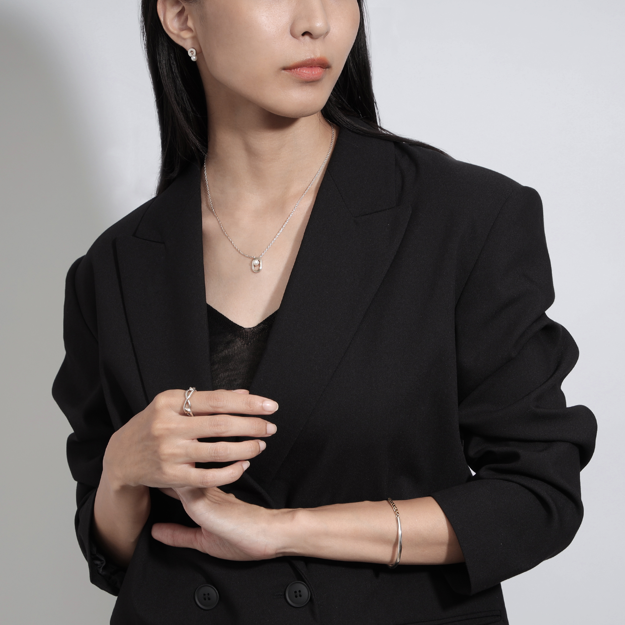 柔らかなシルバーの光沢とパールのてりが、モダンなデザインの中にも優しい雰囲気を演出します。