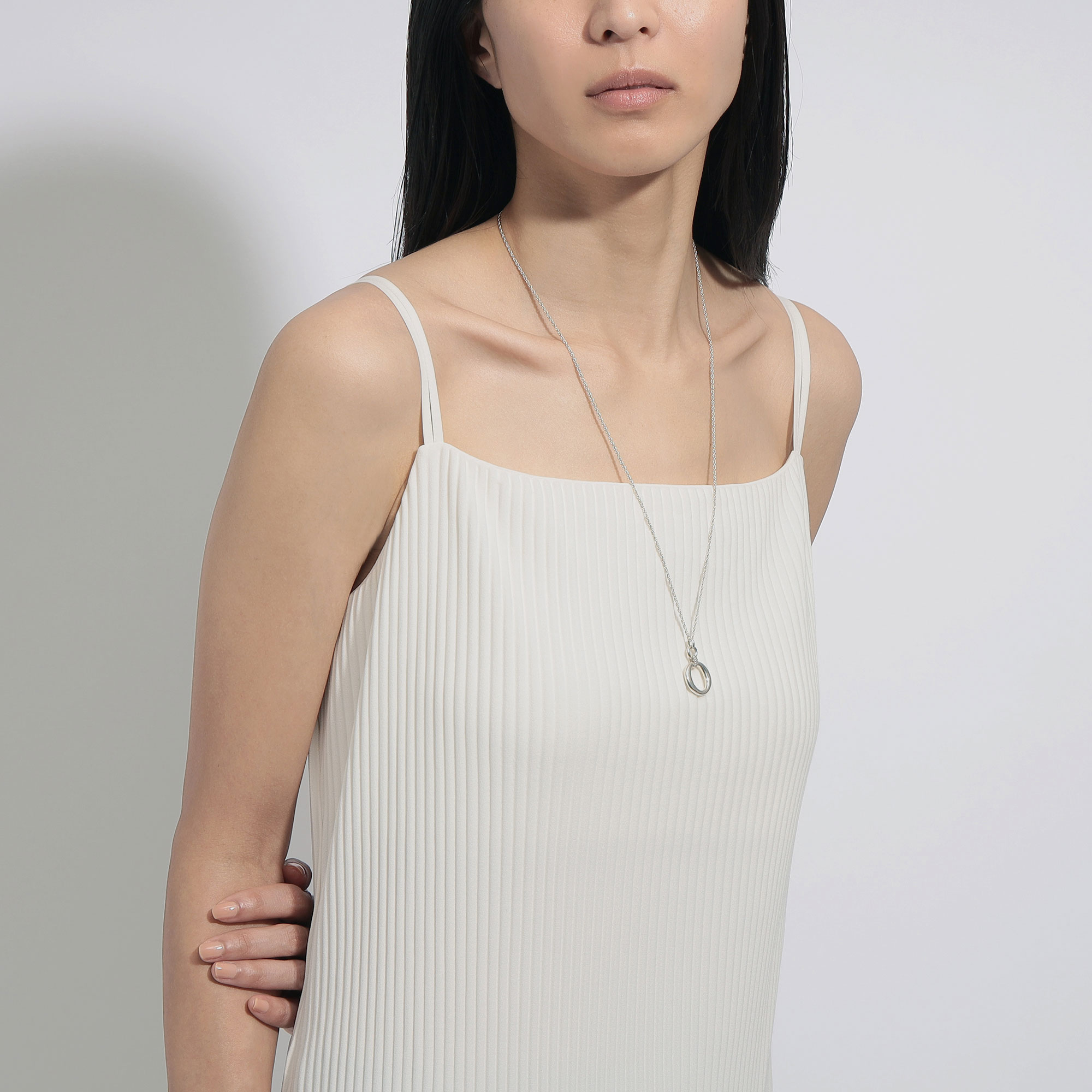 トップの程よいボリューム感が胸元に存在感を与え、65cmのロープチェーンが大人っぽくリラックスしたムードを演出します。