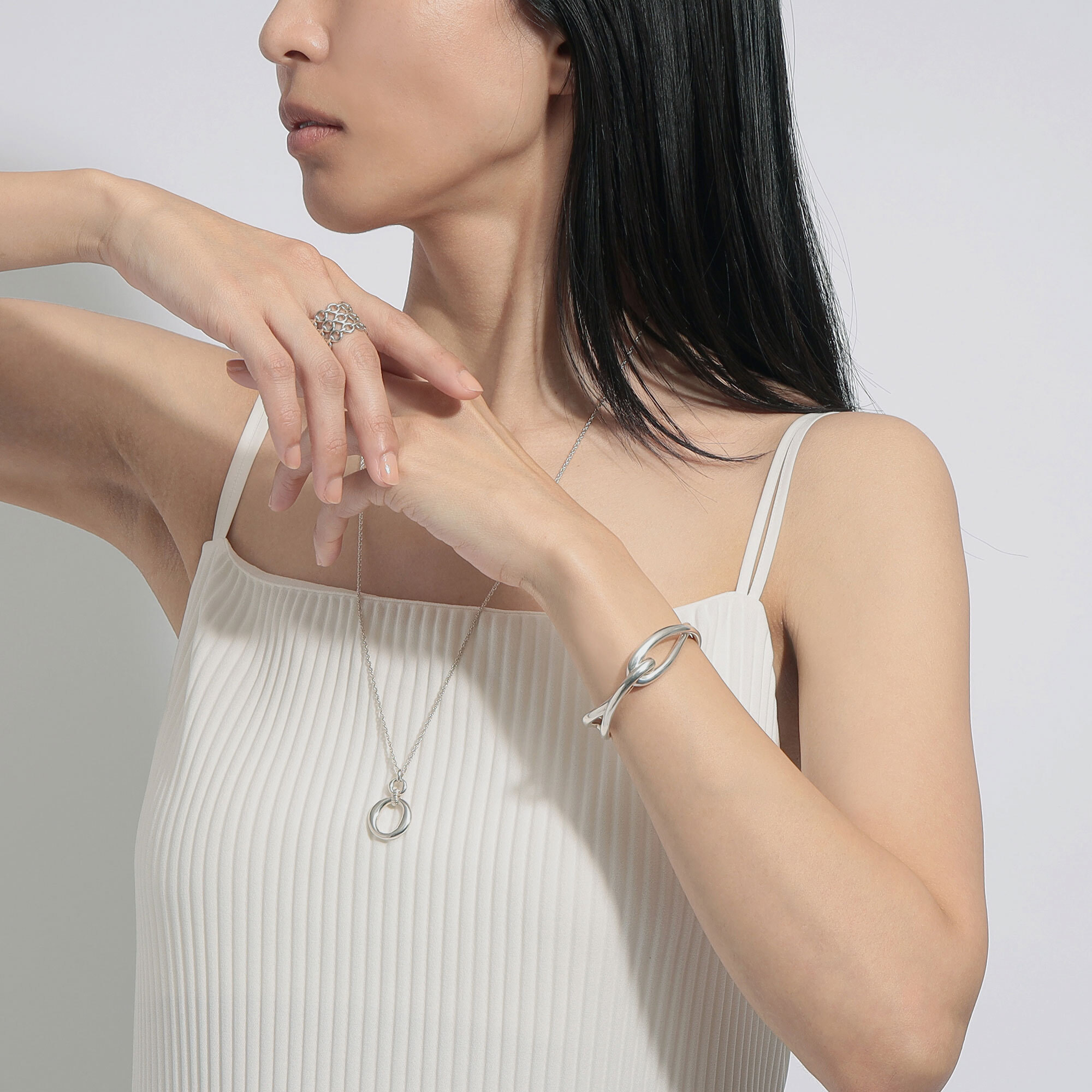 輪を繋げて編み上げたチェインメイル(鎖帷子)を連想させるデザインには、自身を護ってくれるような安心感があります。