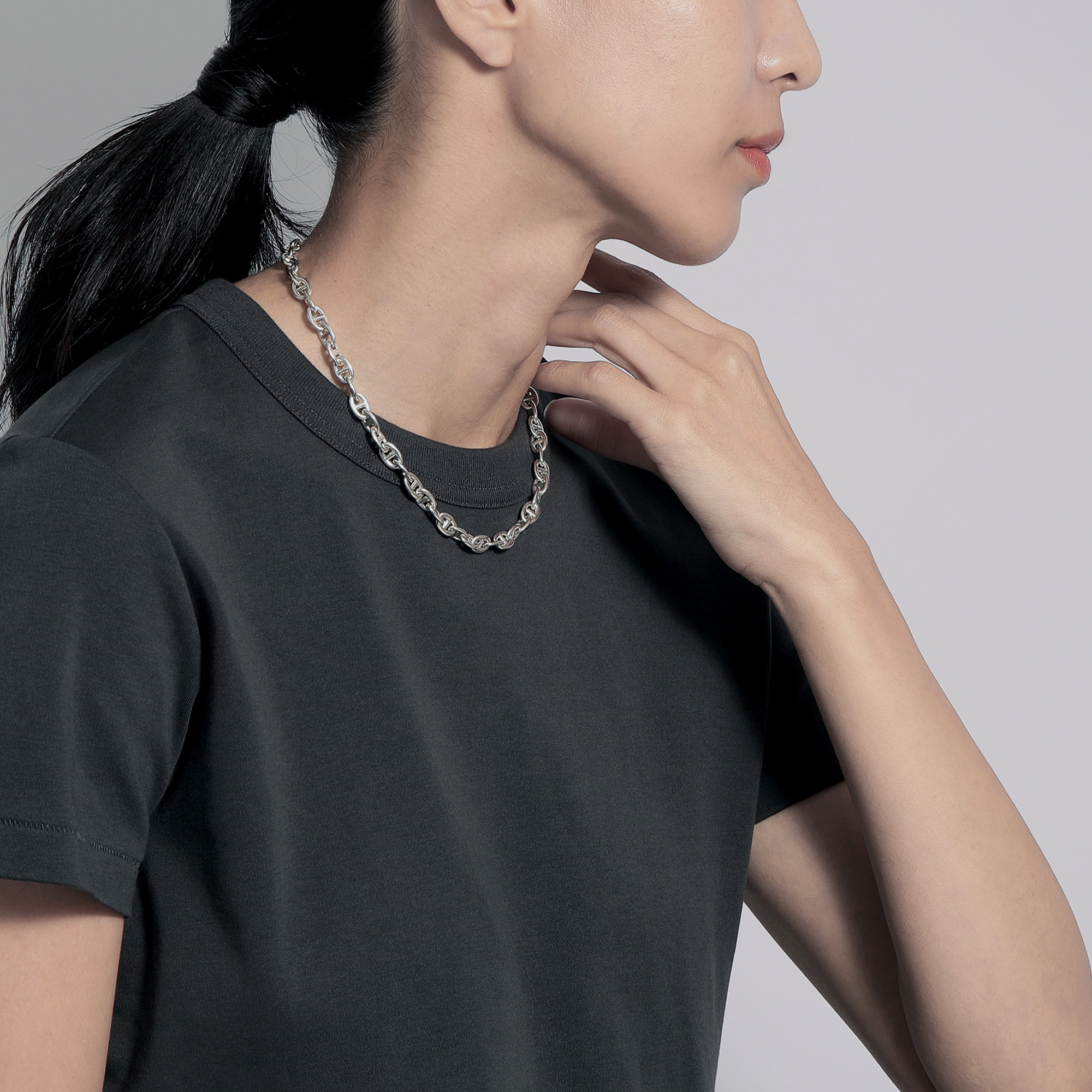 船と碇を繋ぐ為に使用されるアンカーチェーンをデザインソースにしたPORT CHAIN(ポートチェーン)シリーズのネックレス。