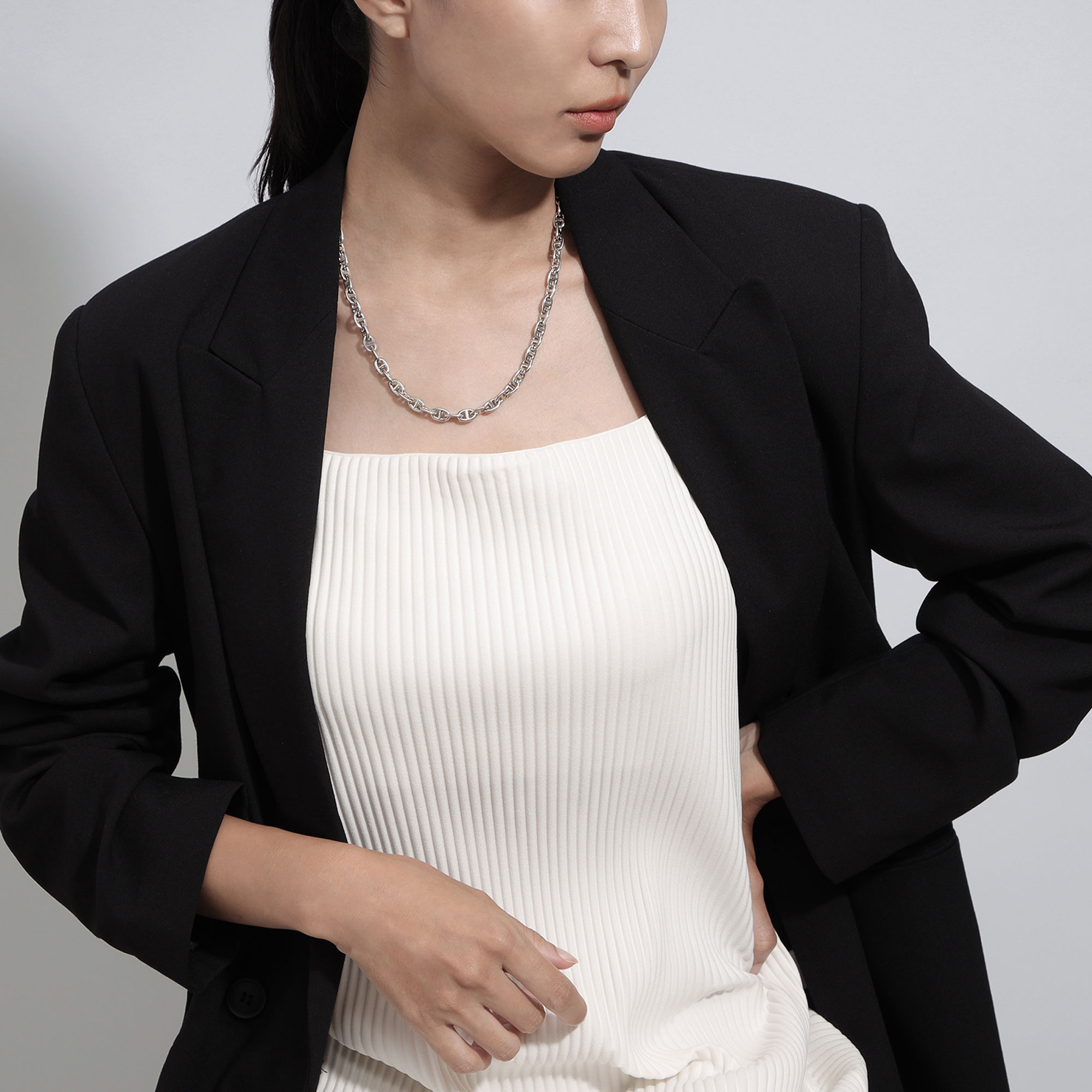 船と碇を繋ぐ為に使用されるアンカーチェーンをデザインソースにしたPORT CHAIN(ポートチェーン)シリーズのネックレス。