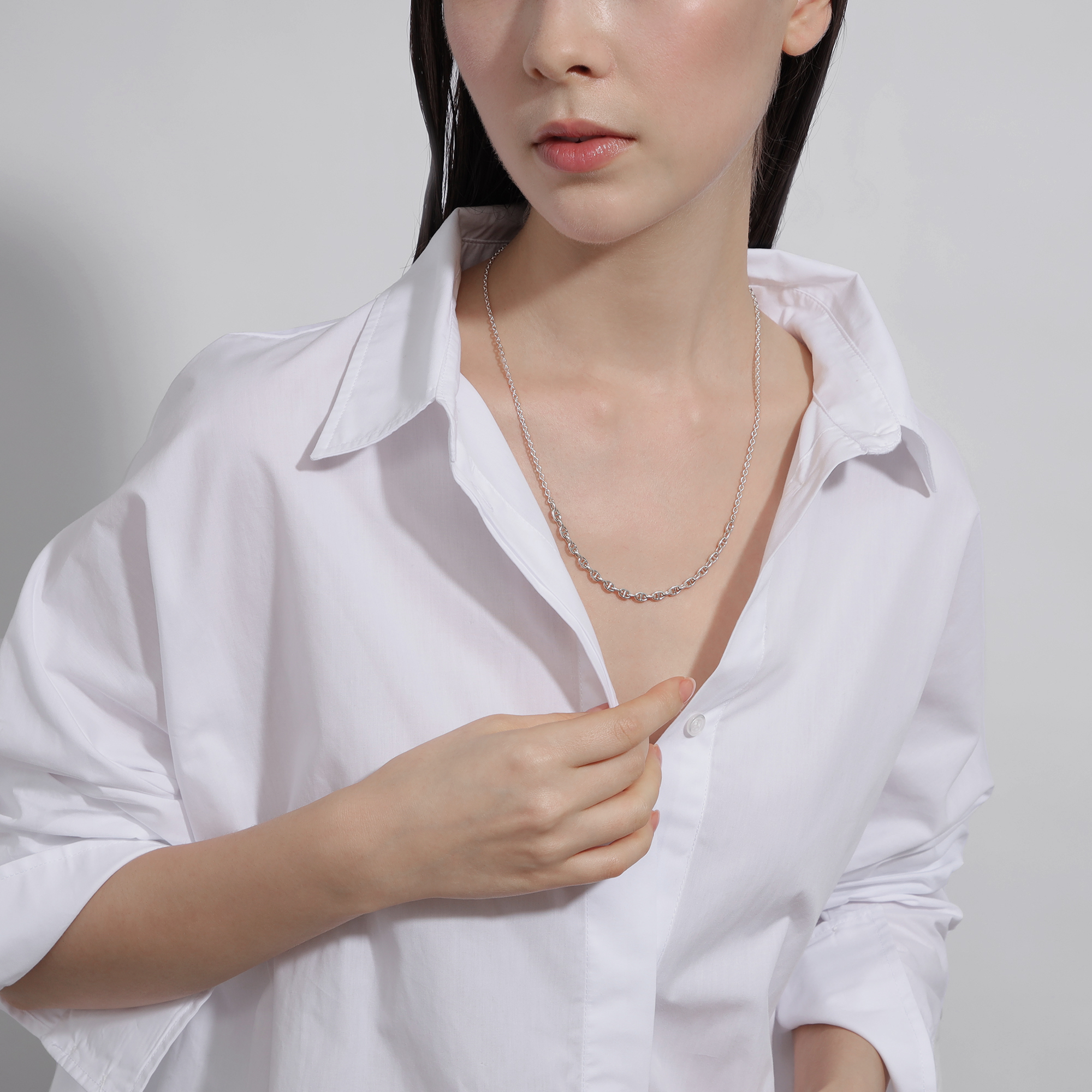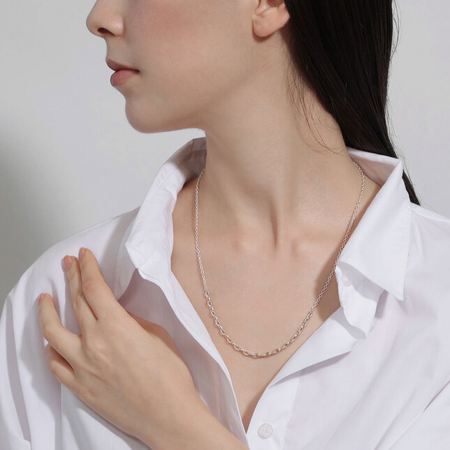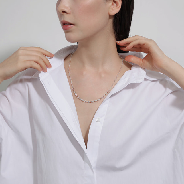 オリジナルのチェーンが緩やかなカーブを描き、首周りを華やかに演出してくれます。