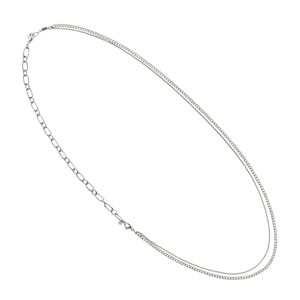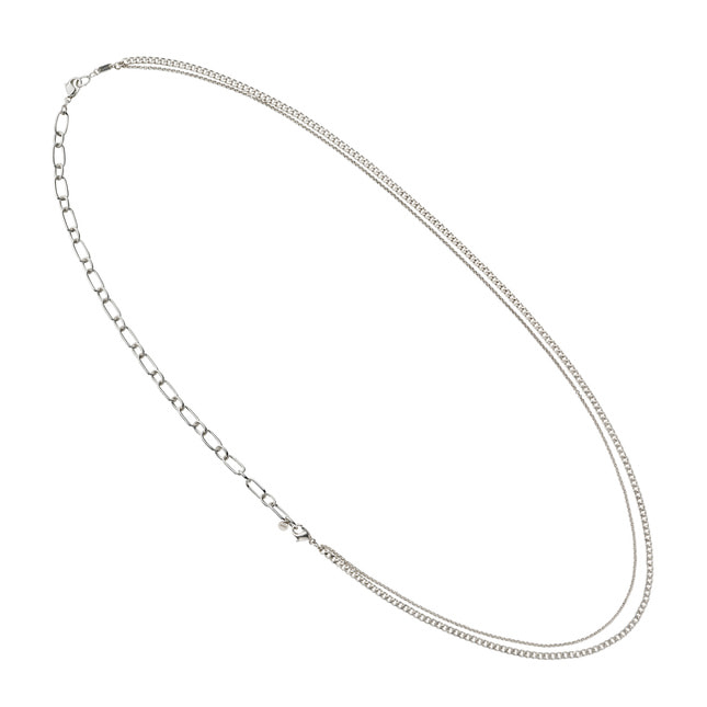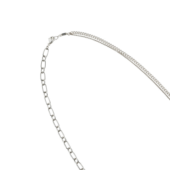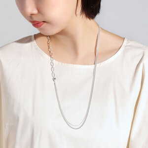 ロングネックレスの状態ではアシンメトリーなチェーンの切り替えがデザイン性の高いネックレス。