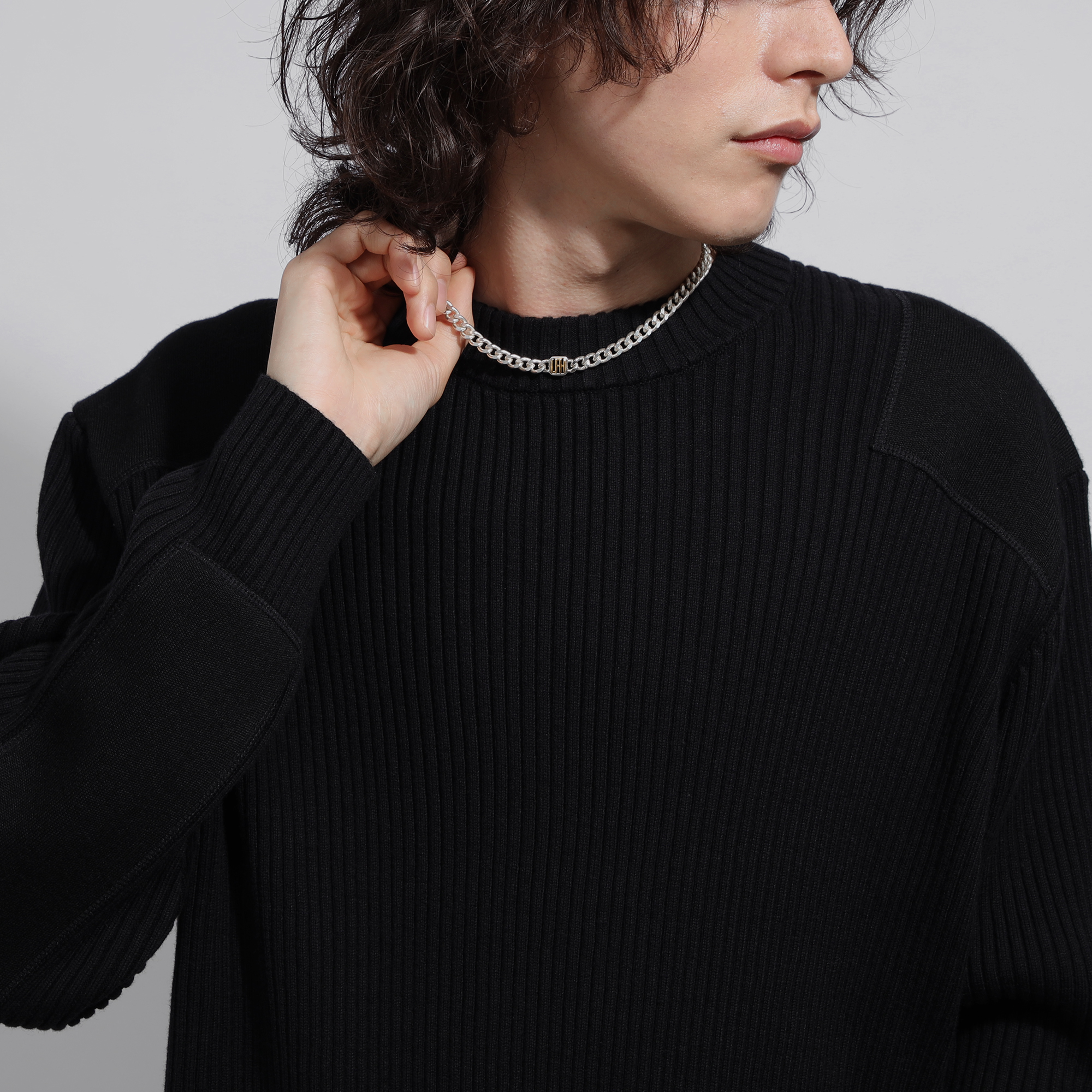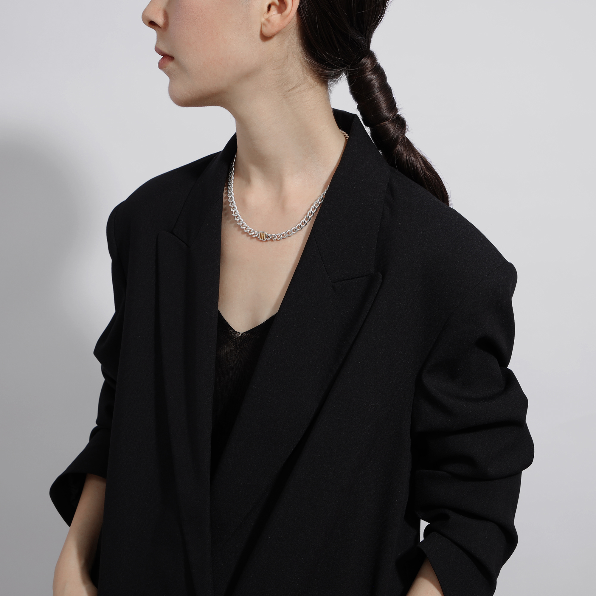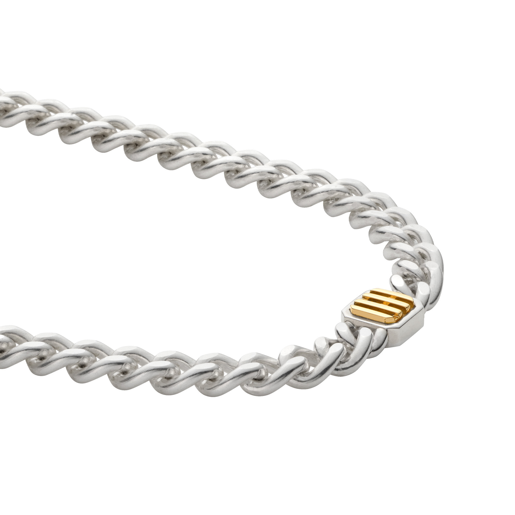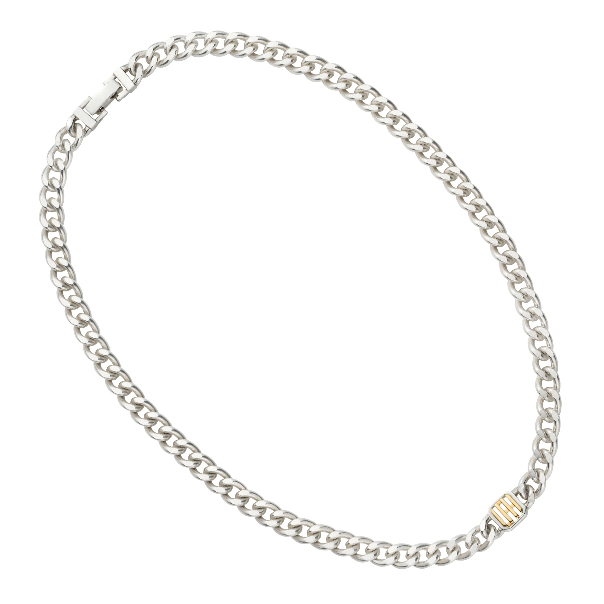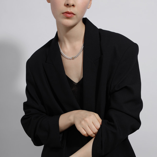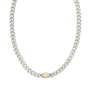 チャンキーなシルバーに、エッジを効かせたゴールドのロゴ使いがスタイリッシュなSIGNET(シグネット)シリーズのネックレス。