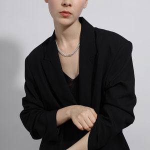 立体感のあるトップの幅に合わせた太めのカット喜平チェーンは、密度が高く高級感のある印象に。
