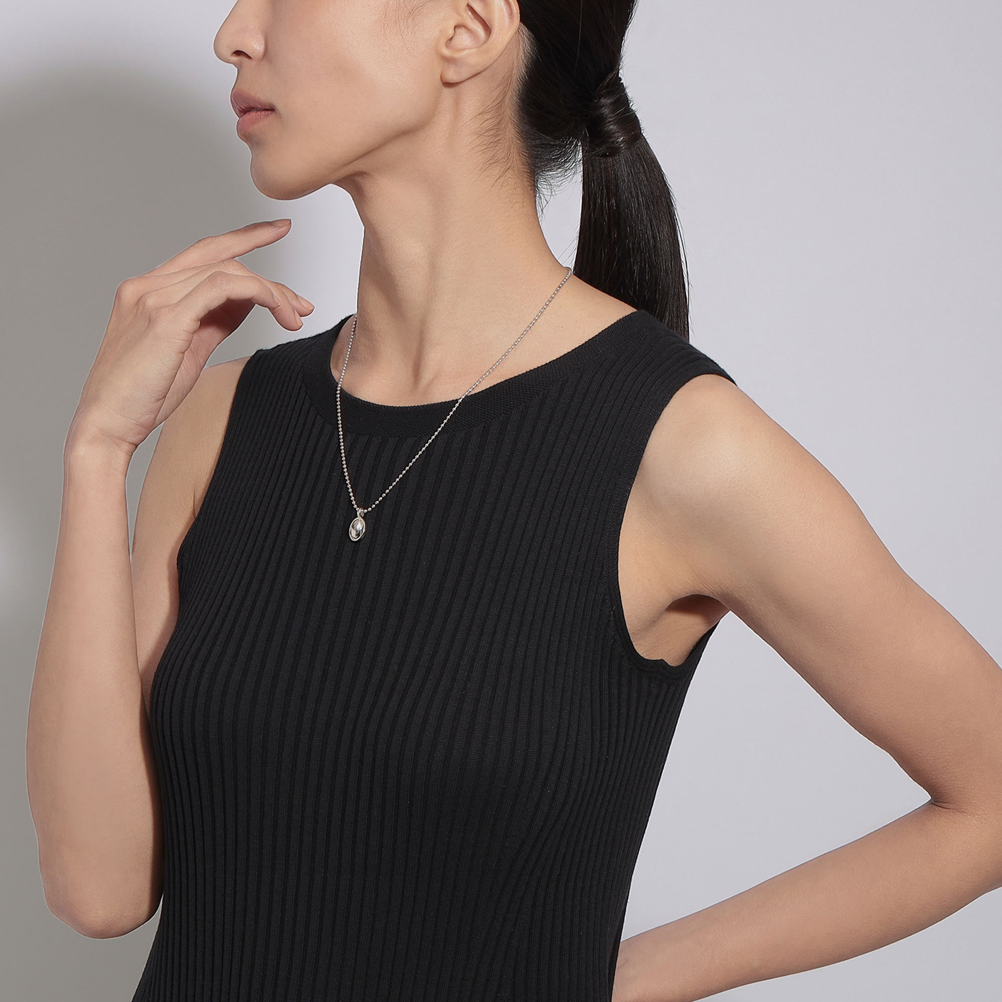 編み込んで製造されたチェーンとは異なる、艶やかですっきりとした表情が魅力のボールチェーン。