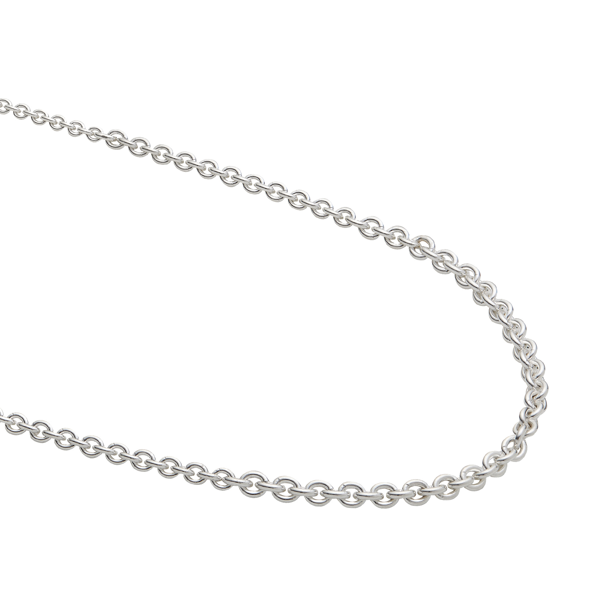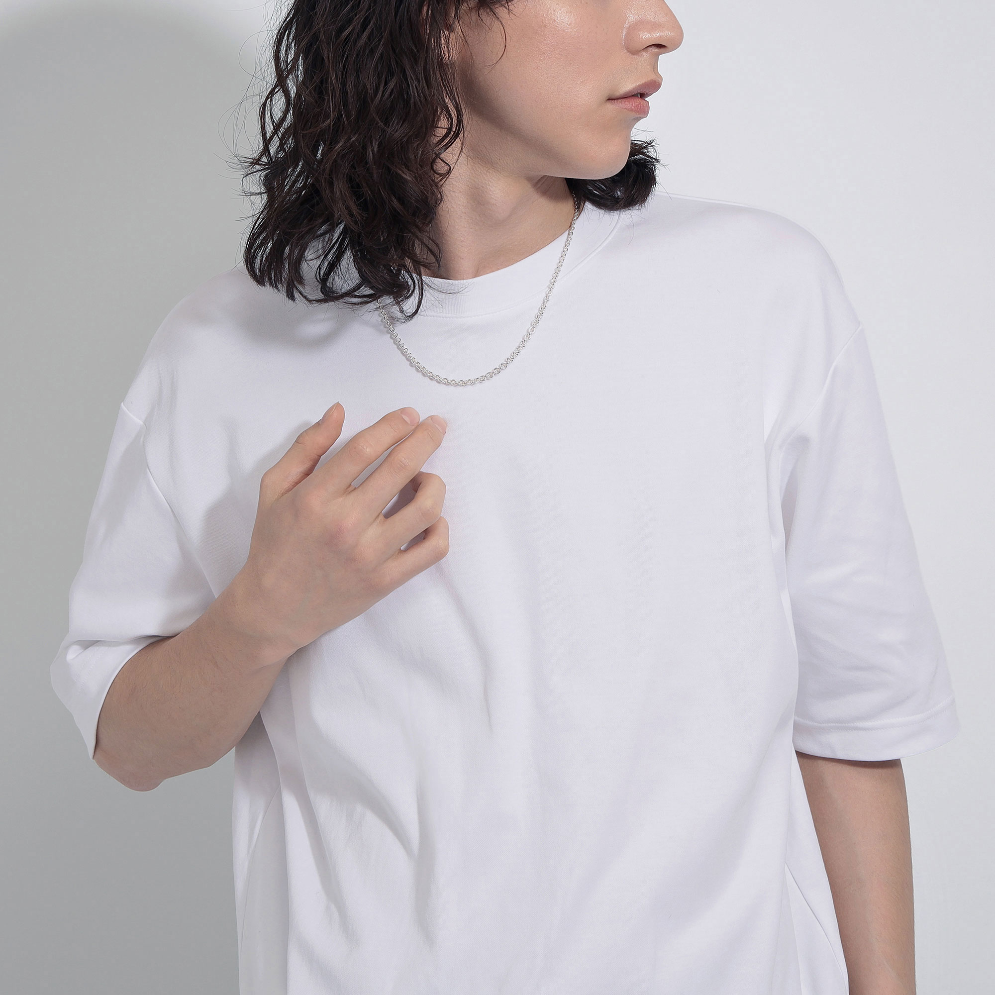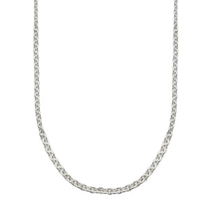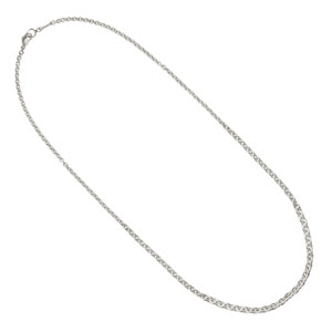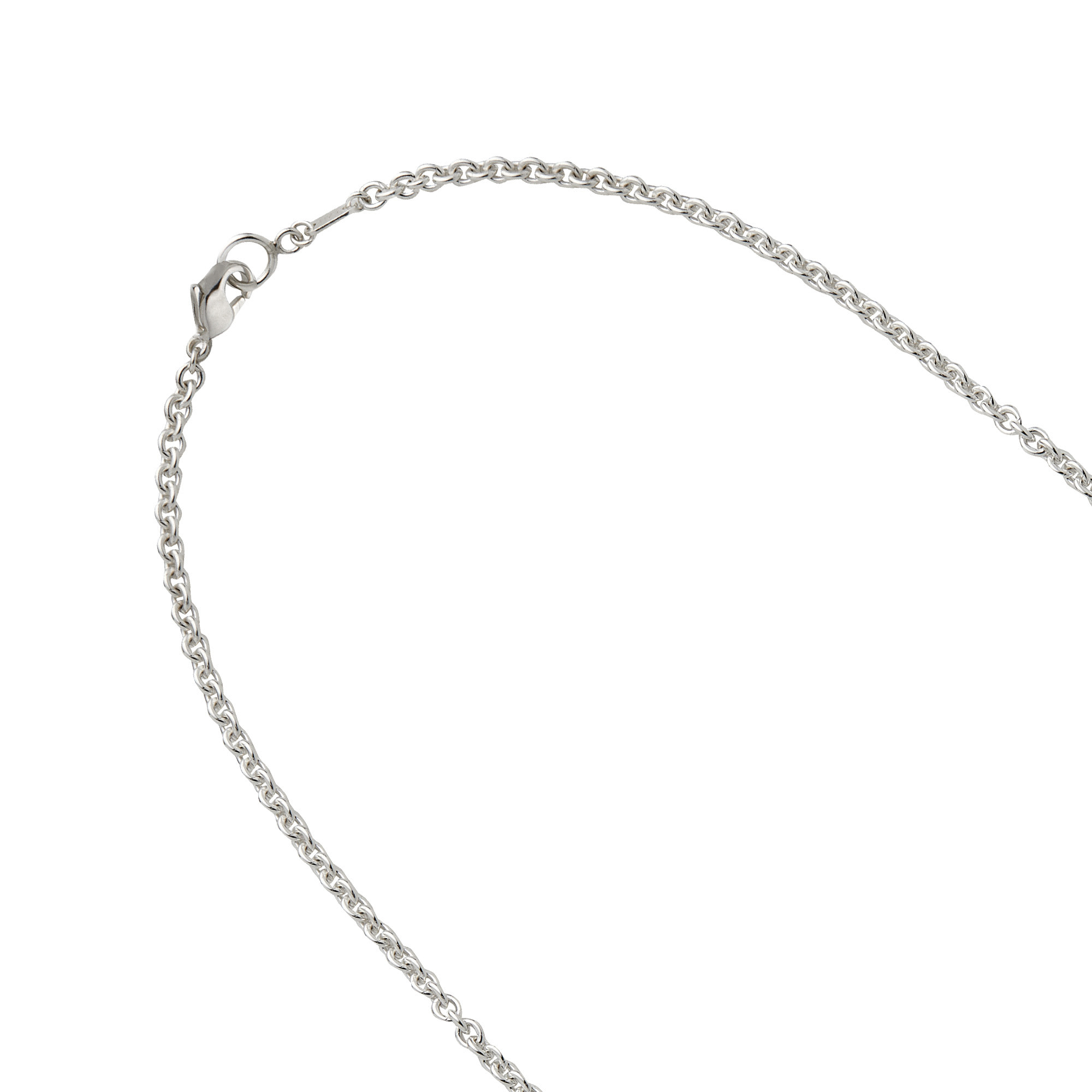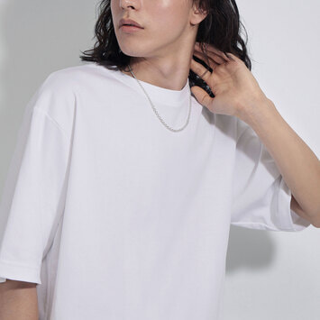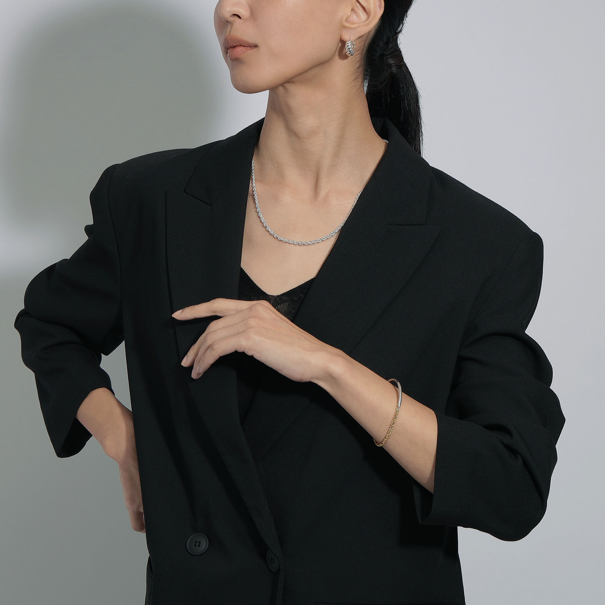 同じデザインのアズキチェーンをサイズグラデーションに組み立てることで、トップにはボリュームがありつつ首周りがすっきりとする仕様に。