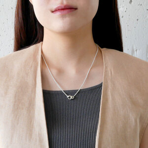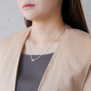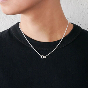 ネックレスチェーンとトップは一体感のあるデザインで、首周りに自然なカーブを描きます。