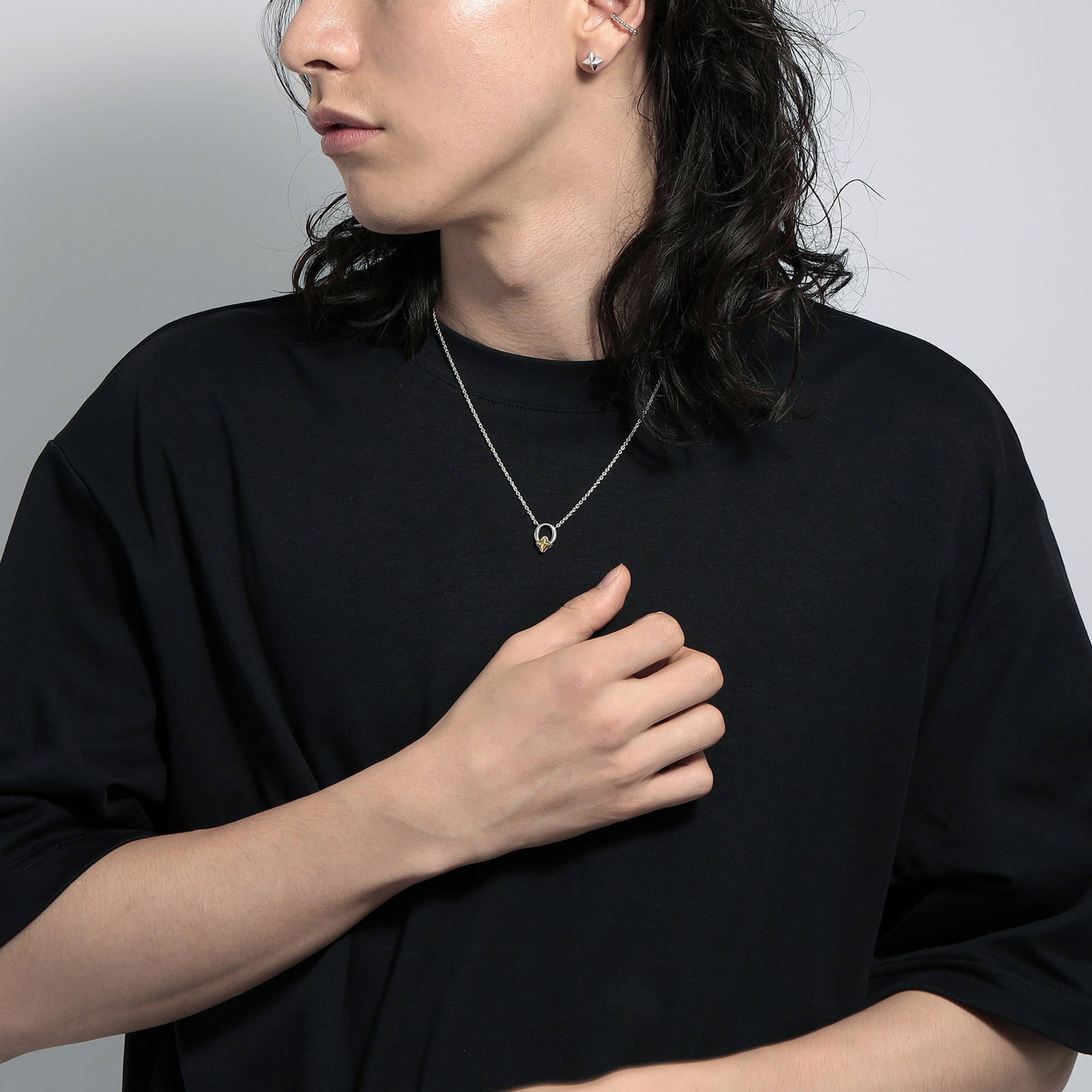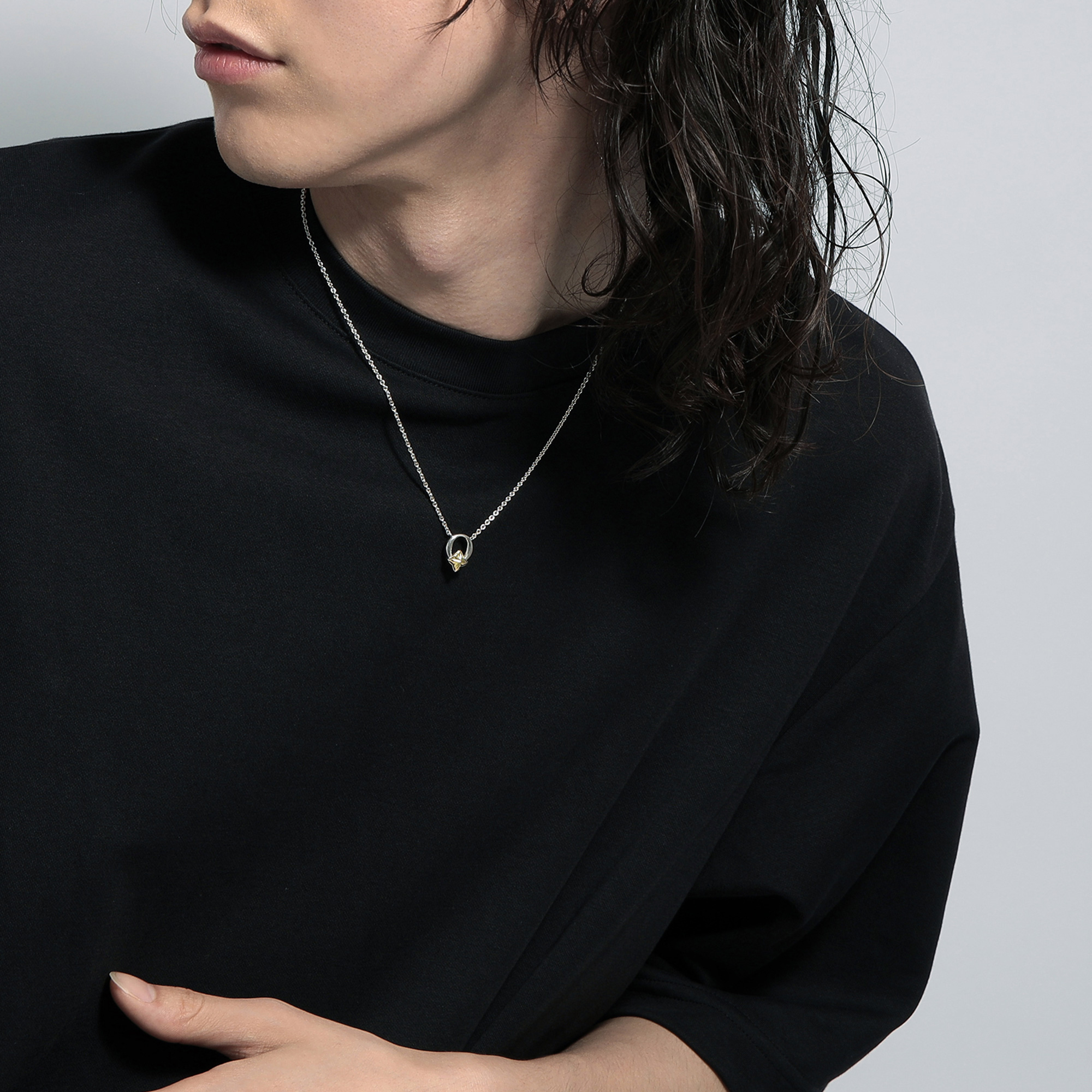 シルバーのクリーンな表情にK18イエローゴールドの程よい装飾性が加わり、顔周りに存在感を与えてくれます。