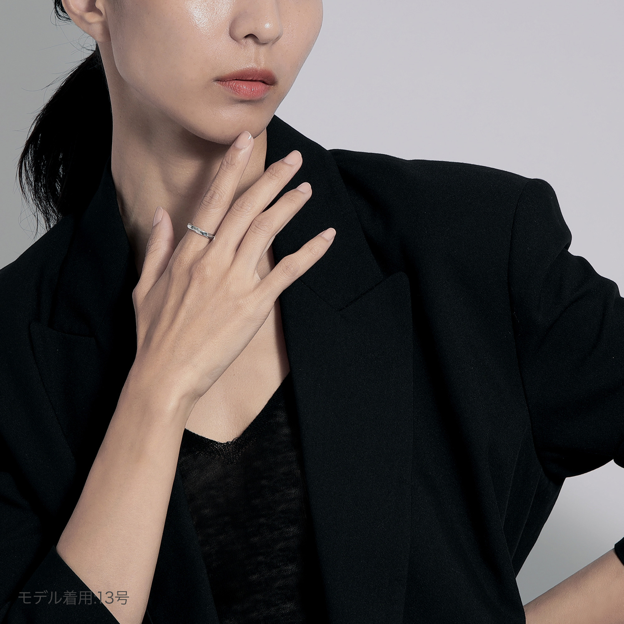 アウトラインのシルエットはストレートなので重ね付けもしやすく、さまざまなスタイリングをお楽しみいただけます。