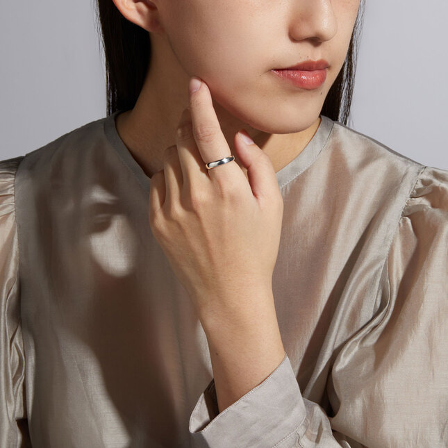 リングの幅にこだわり、細すぎず太すぎない、シルバーのしっとりとした重さを感じられるリングです。