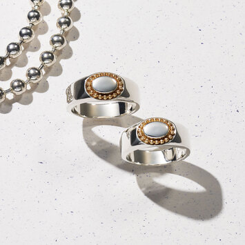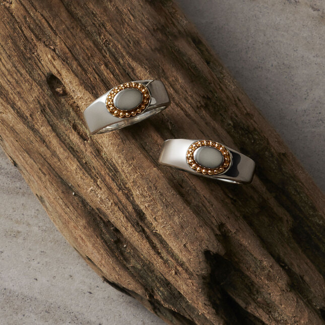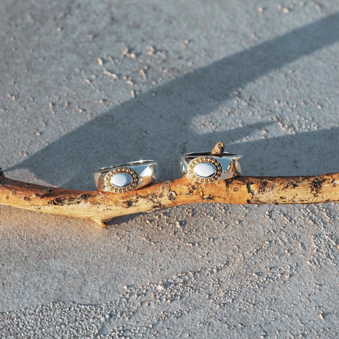 シルバーとK18イエローゴールドのコンビカラーは、カジュアルな印象に高品位な素材感がプラスされ、スタイリングを格上げします。
