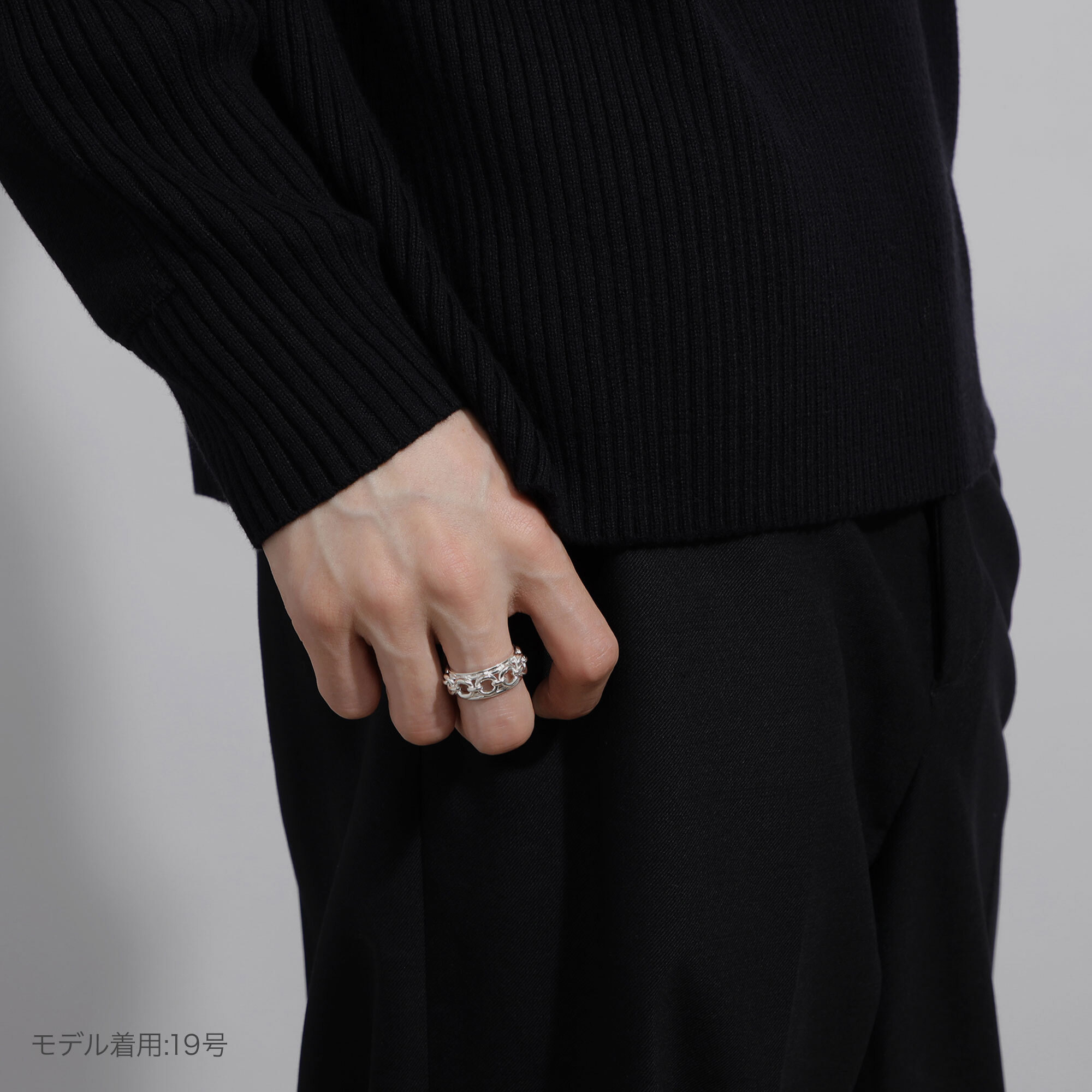 輪を繋げて編み上げたチェインメイル(鎖帷子)を連想させるデザインには、自身を護ってくれるような安心感があります。