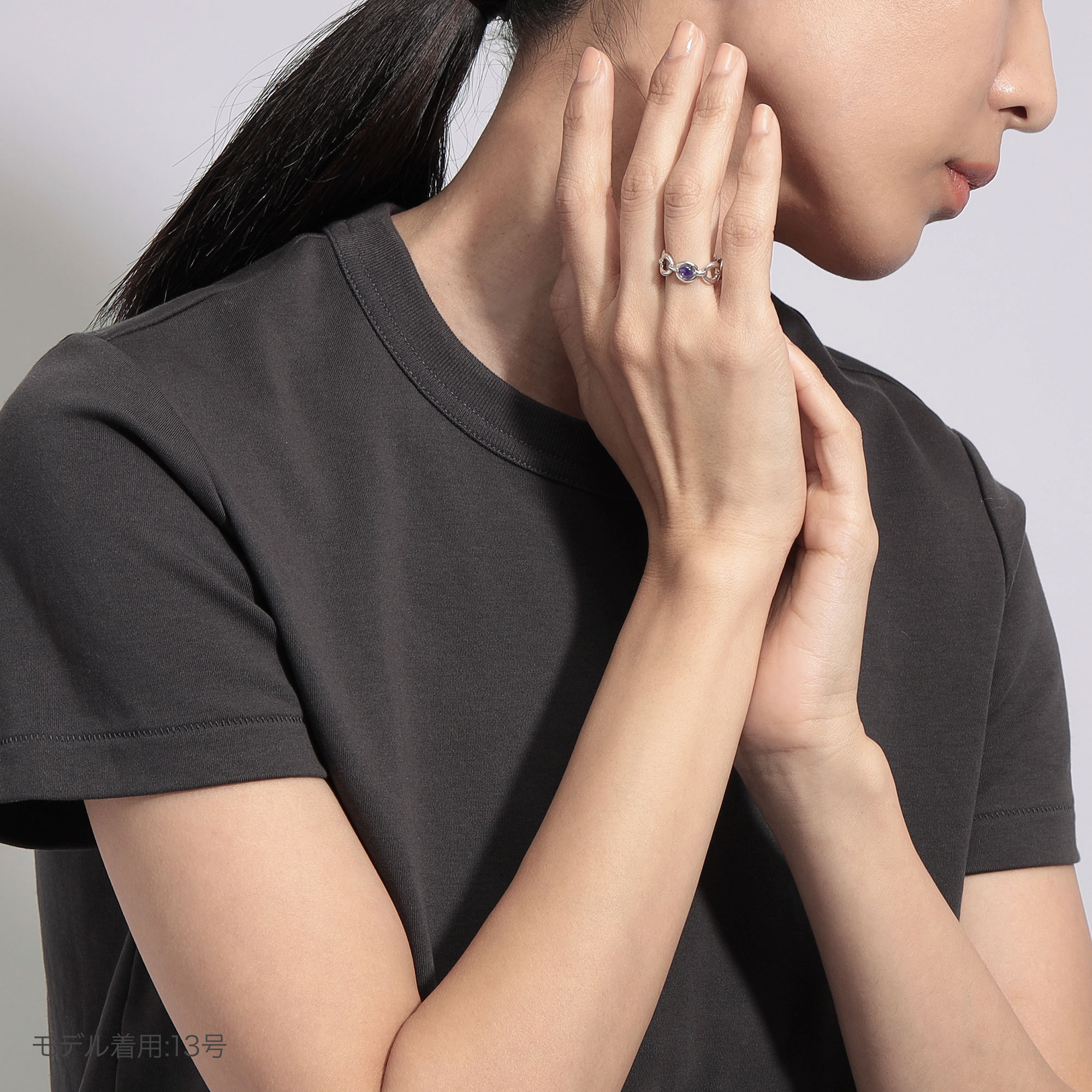 リング中央にはアイオライトの石をセッティング。