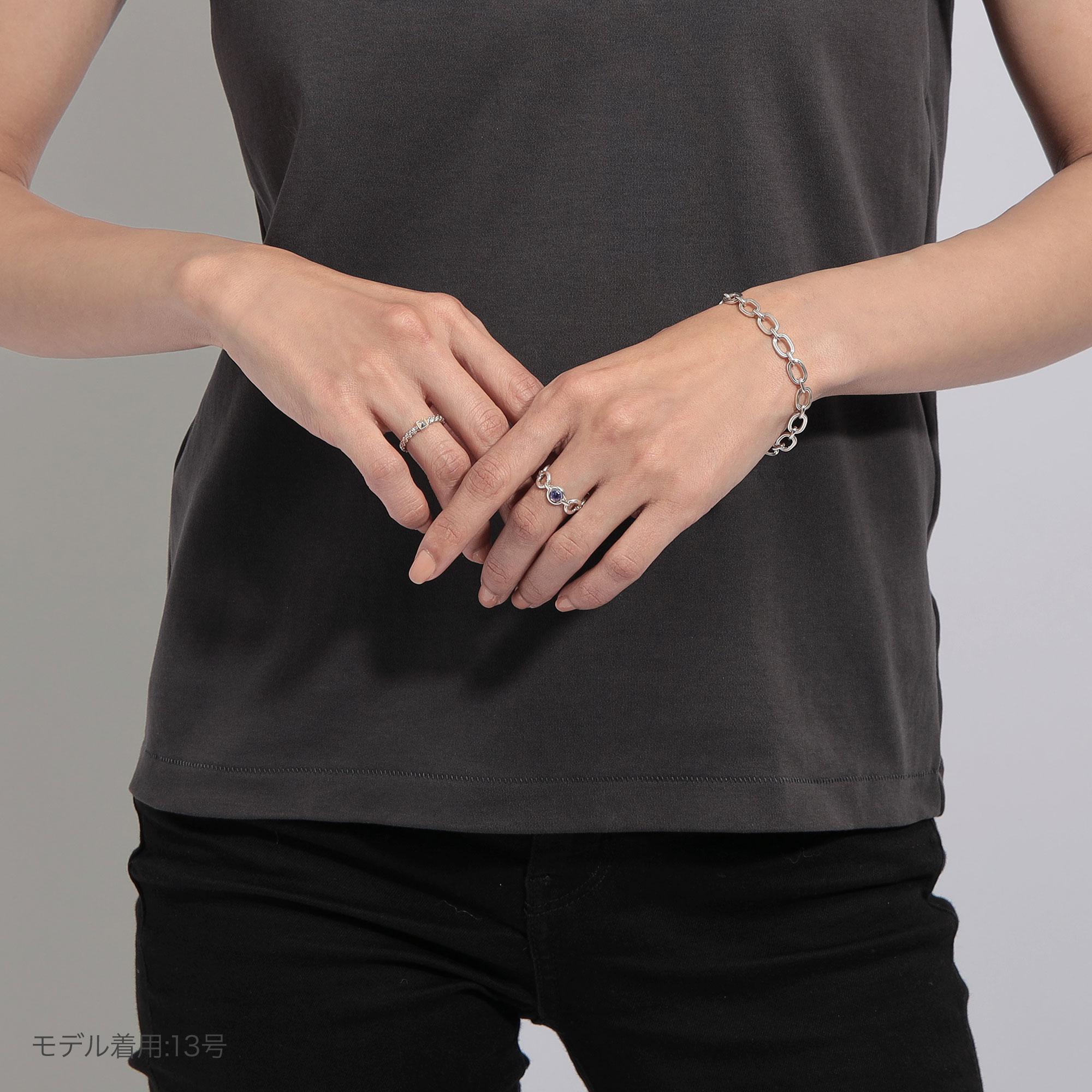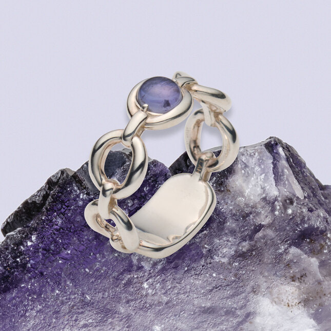 シルバーにアイオライトの透明感のある優しい色味が加わり手元を華やかに彩ります。