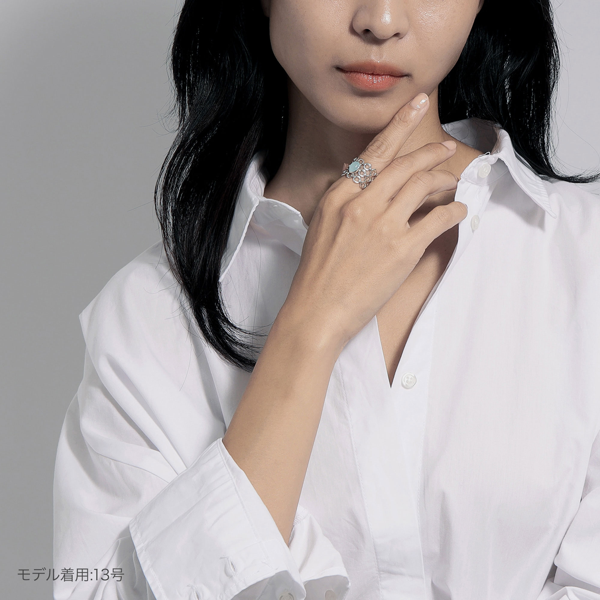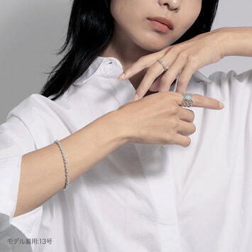 存在感のあるデザインでありながらも、ふっくらと丸いパーツの連なりは透け感があり、肌に優しく沿うしっとりとした着け心地が魅力。