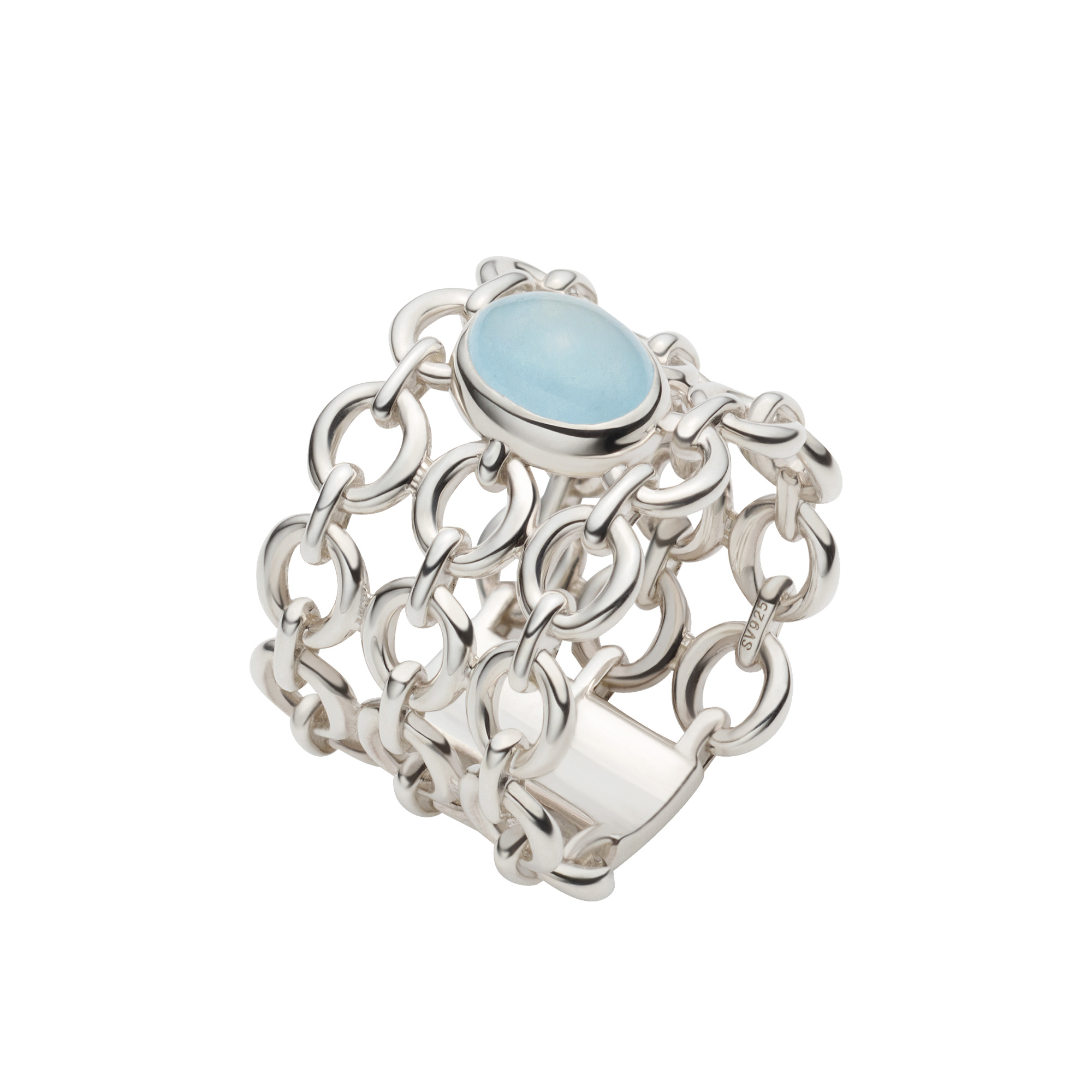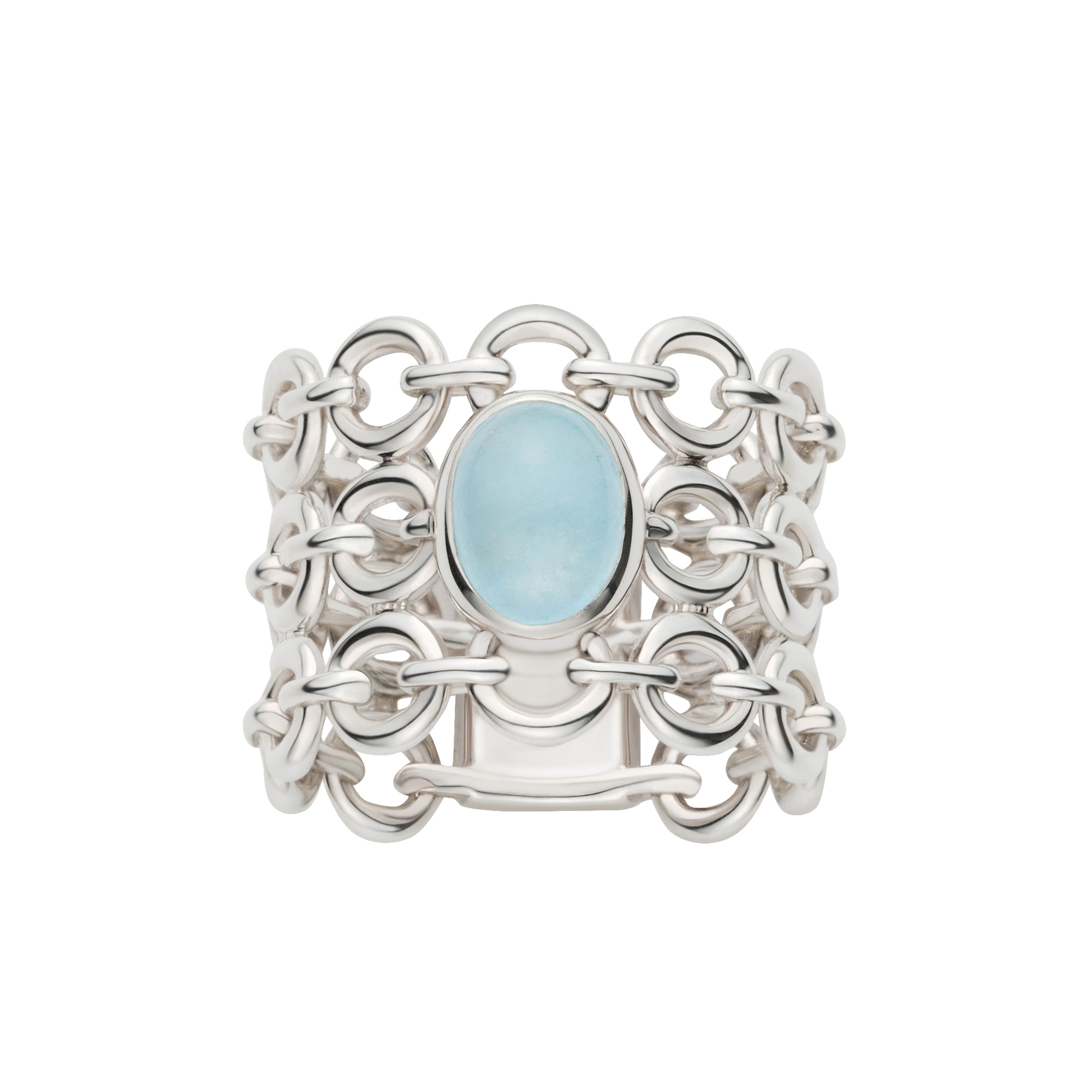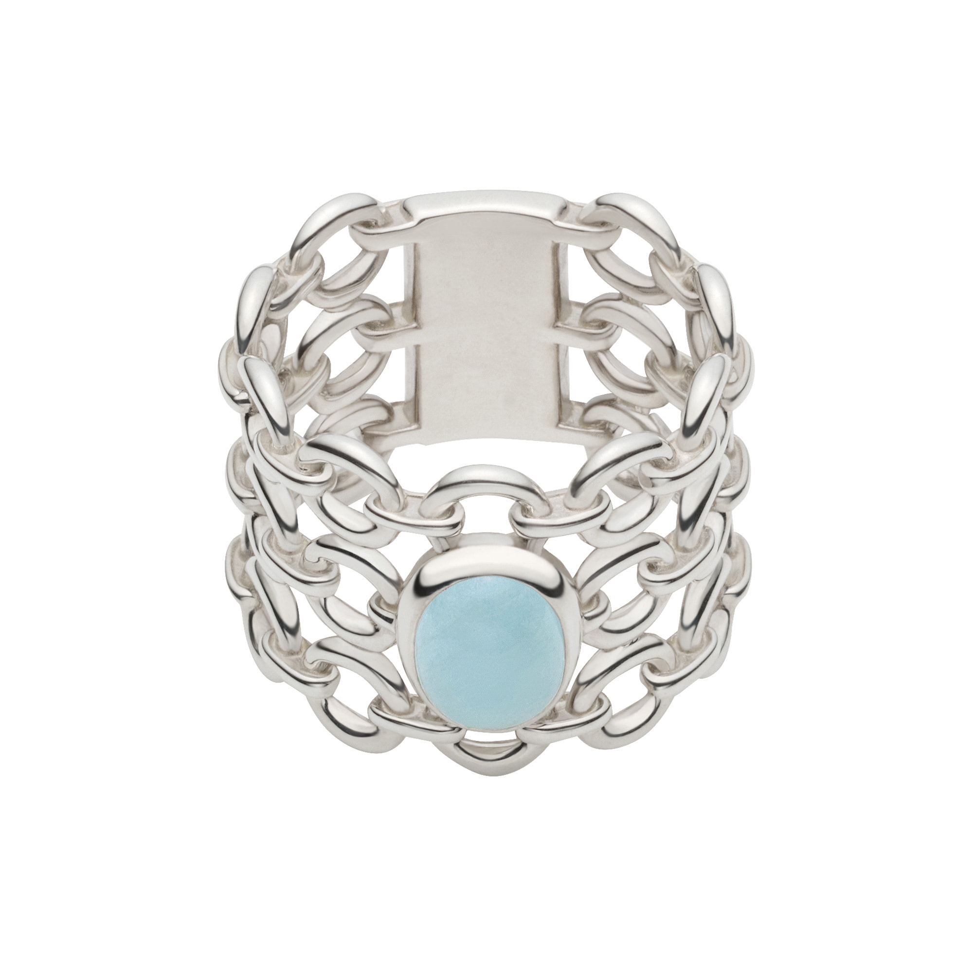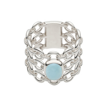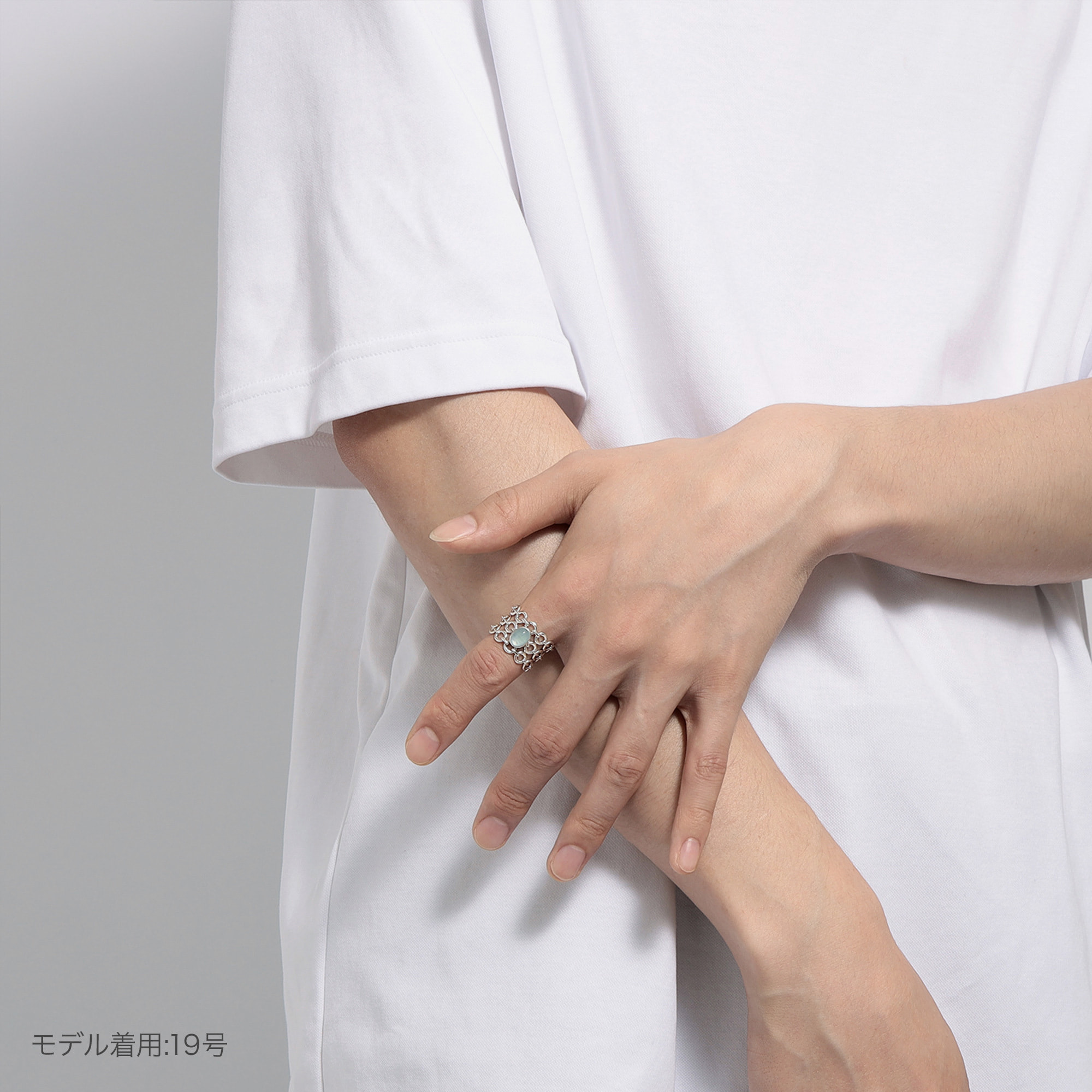 中央にはミルキーアクアマリンの石をセッティング。