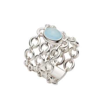 輪を繋げて編み上げたチェインメイル(鎖帷子)を連想させるデザインには、自身を護ってくれるような安心感があります。