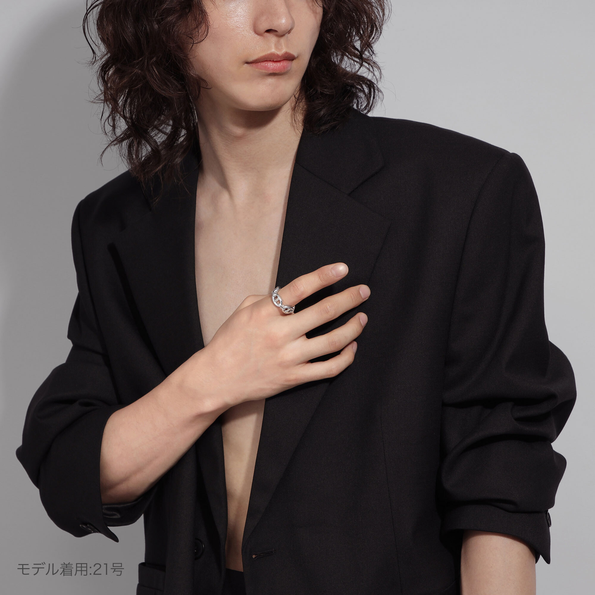 船と碇を繋ぐ為に使用されるアンカーチェーンをデザインソースにしたPORT CHAIN(ポートチェーン)シリーズのリング。