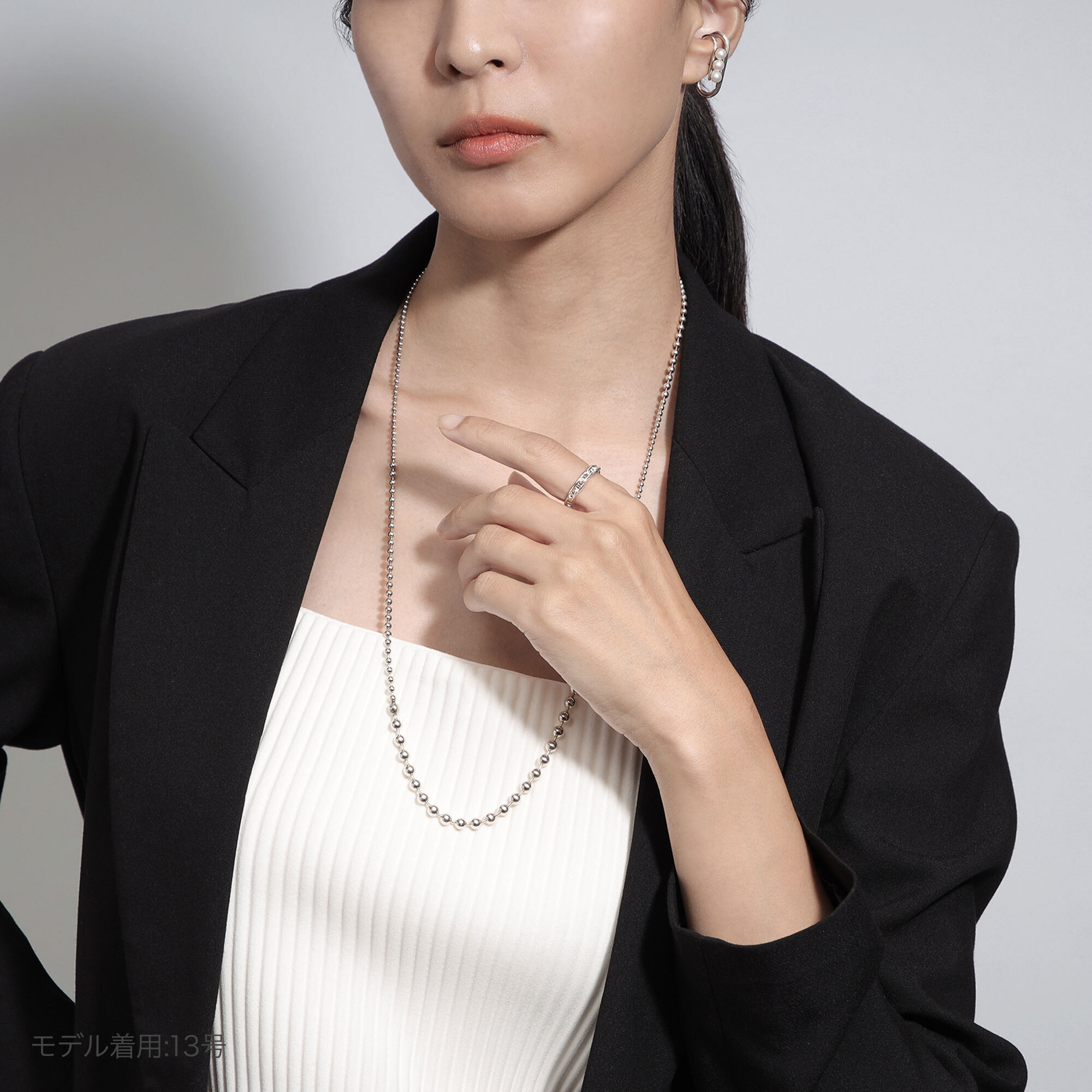 ストレートなシルエットで重ね着けにも最適なデザインです。