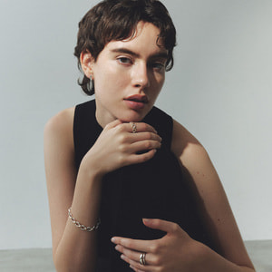 柔らかく滑らかな仕上げの輪にクロススタッズを組み合わせた、ディティールのコントラストが魅力。