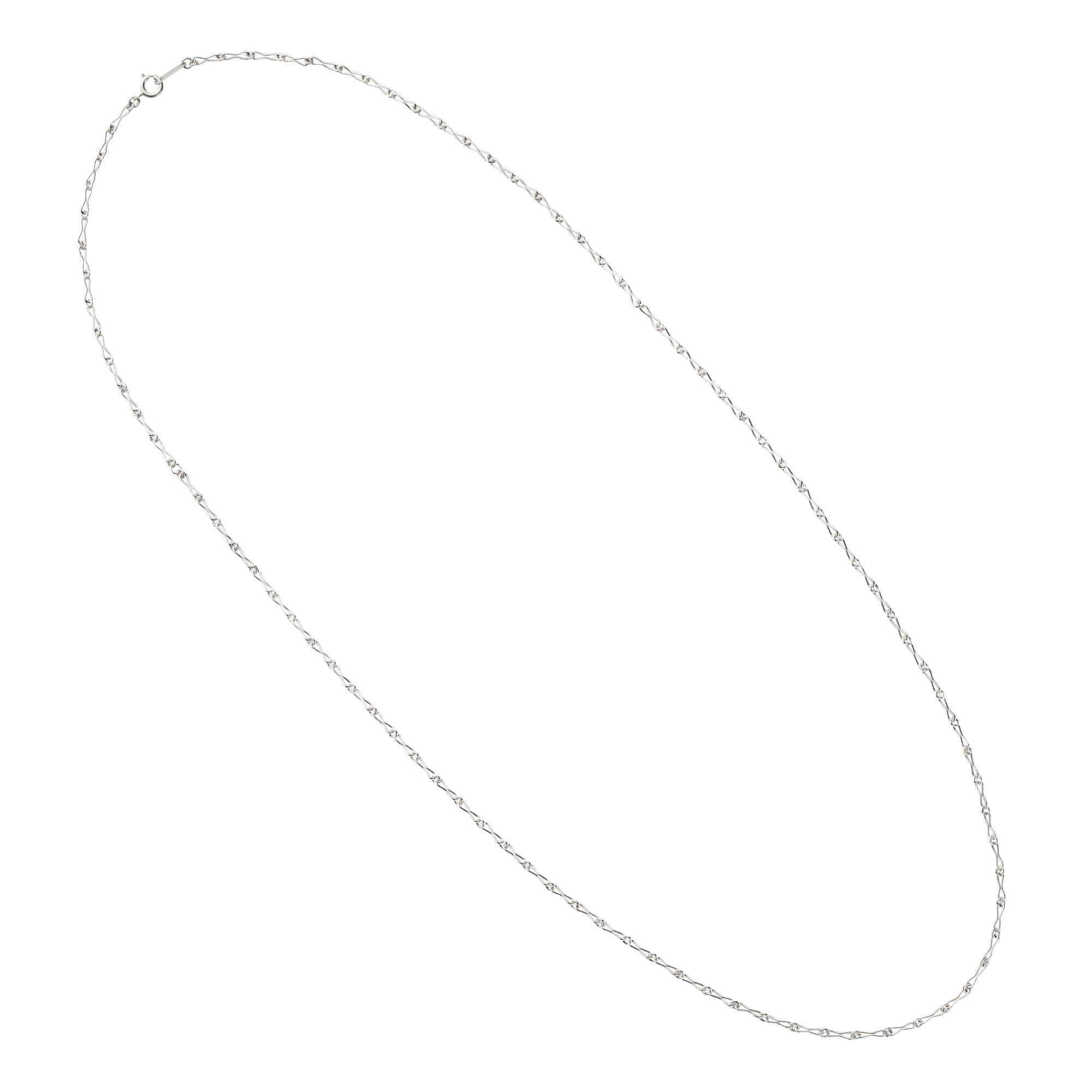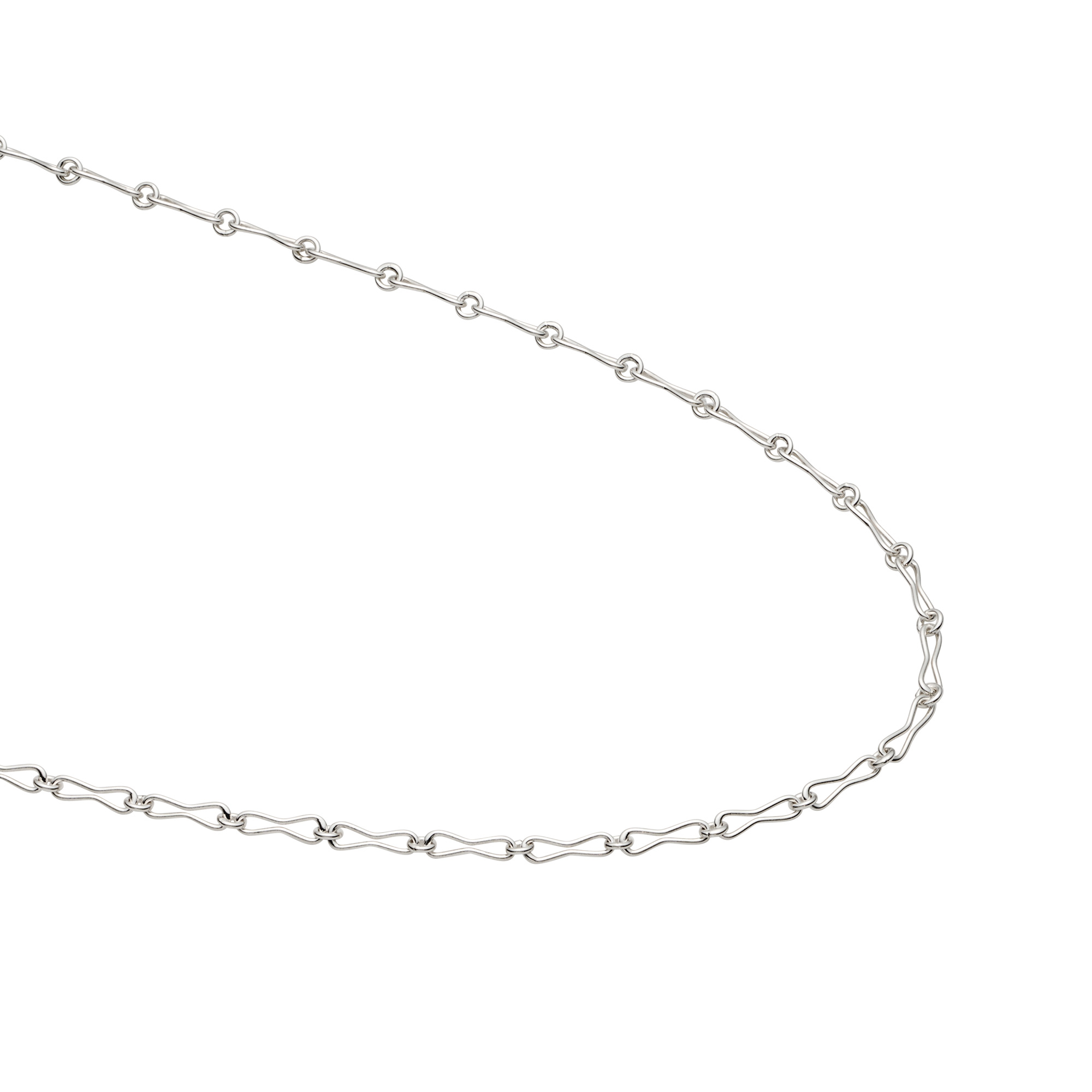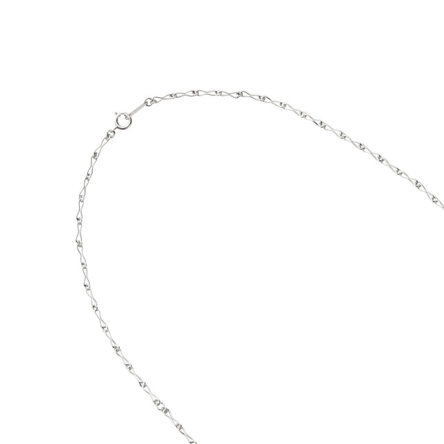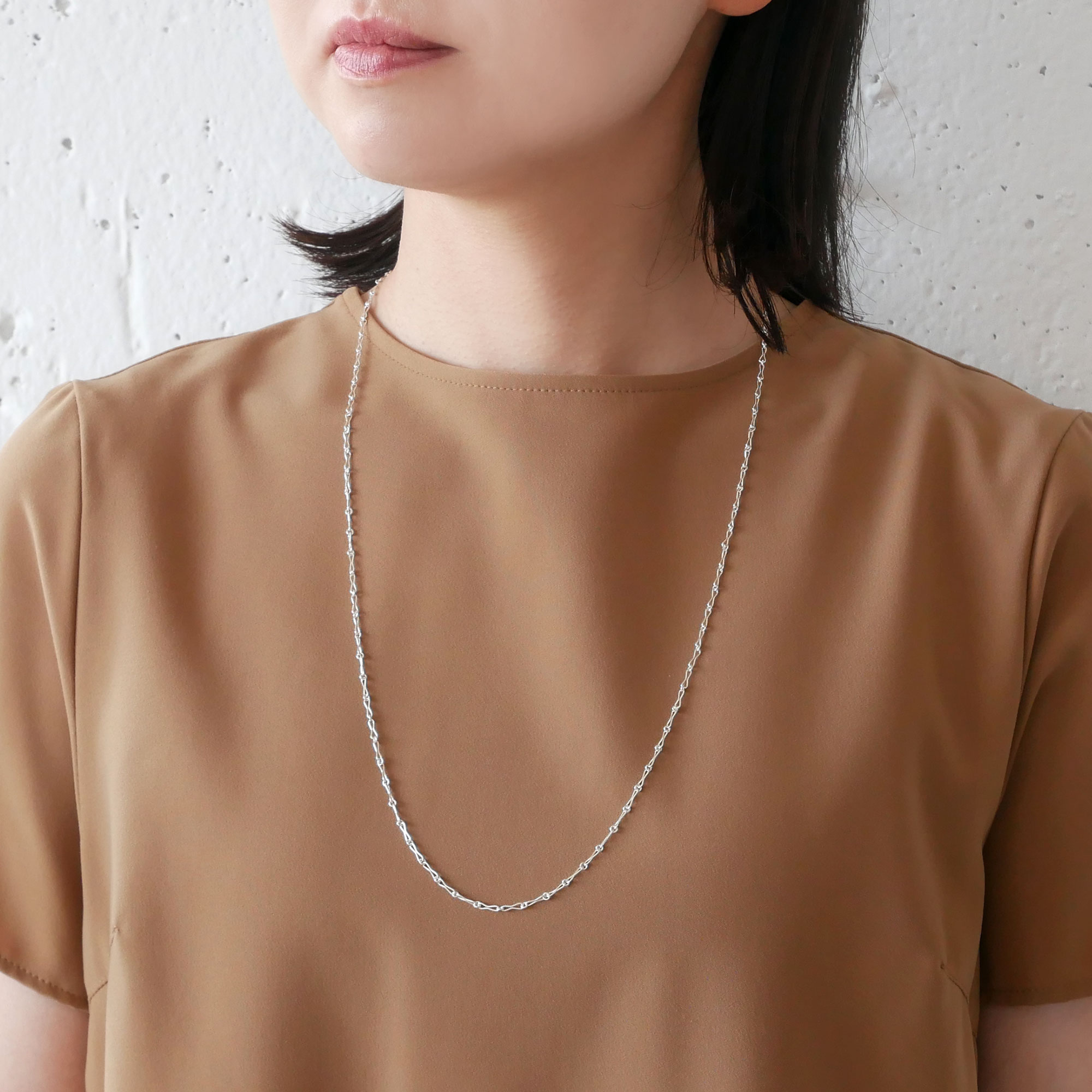 8の字をつなげたようなデザイン性のあるチェーンを使用したネックレスは、一本でコーディネートに華やかさをプラス。