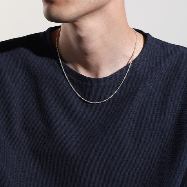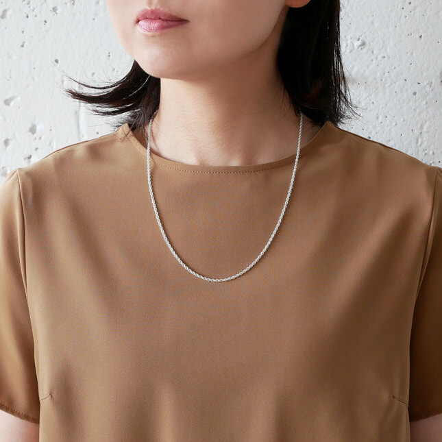 NUDE SILVERの輝きが楽しめるツイストチェーンはコーディネートのアクセントに。