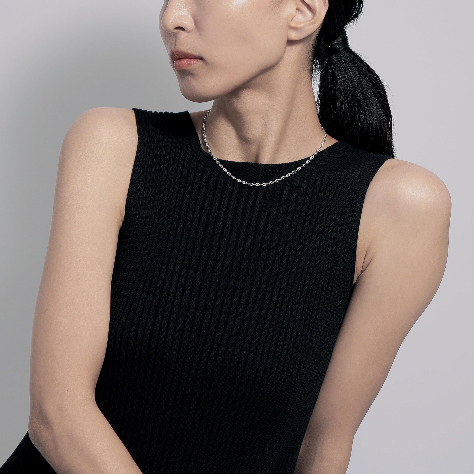 ベーシックなサイズのチェーンをチョイスしたチェーンネックレス。