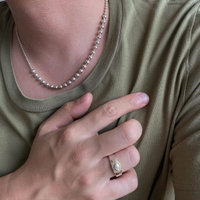 ランダムなボール配置はほどよいカジュアルさで新鮮な印象のネックレスに印台をL.A.H.らしくアレンジしたリングをプラス。性別問わず使いやすくスタイリングしやすいアイテムです。