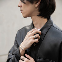 クールなレザーシャツはトレンド感があるビックシルエットがおすすめ。レザーシャツのハードな印象に、シルバージュエリーがおしゃれ度をアップ。