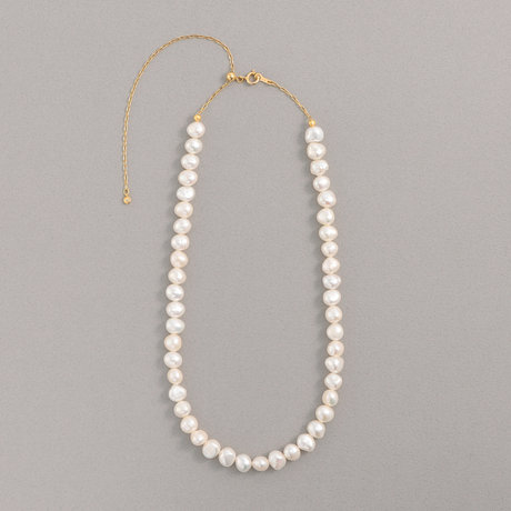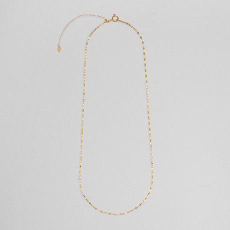 肌見せの少ない季節こそ、お守りのように身に着けたいネックレス。スライドアジャスターを採用しているので、冬の襟元にも対応でき、レイヤードスタイリングも楽しめる。K18のスキンジュエリーや、ドリームサイズの合成モアッサナイトはご褒美として選びたいアイテム。