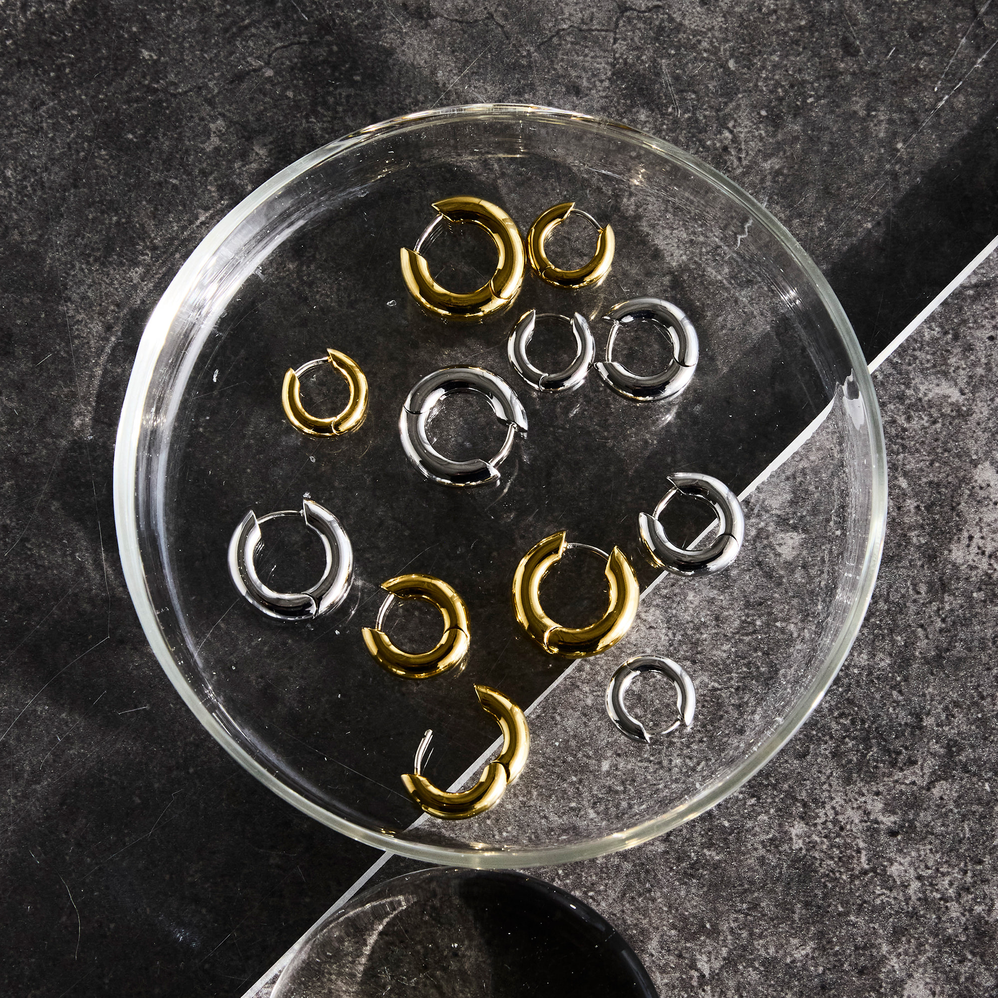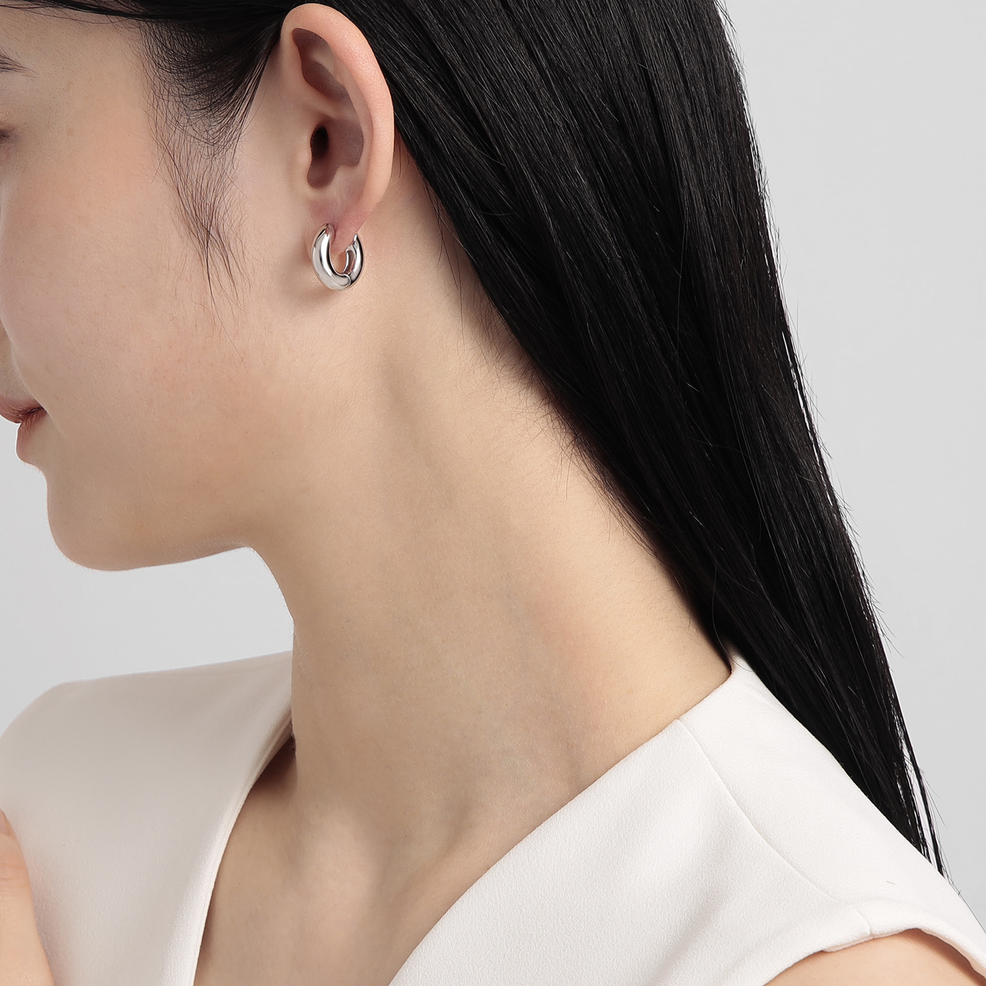 ミニマルで程よいボリューム感があるメタルのフープピアス