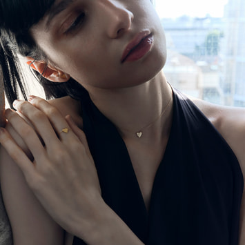 「LOVE(絵文字ハート)」のタトゥーをK18イエローゴールドで表現し