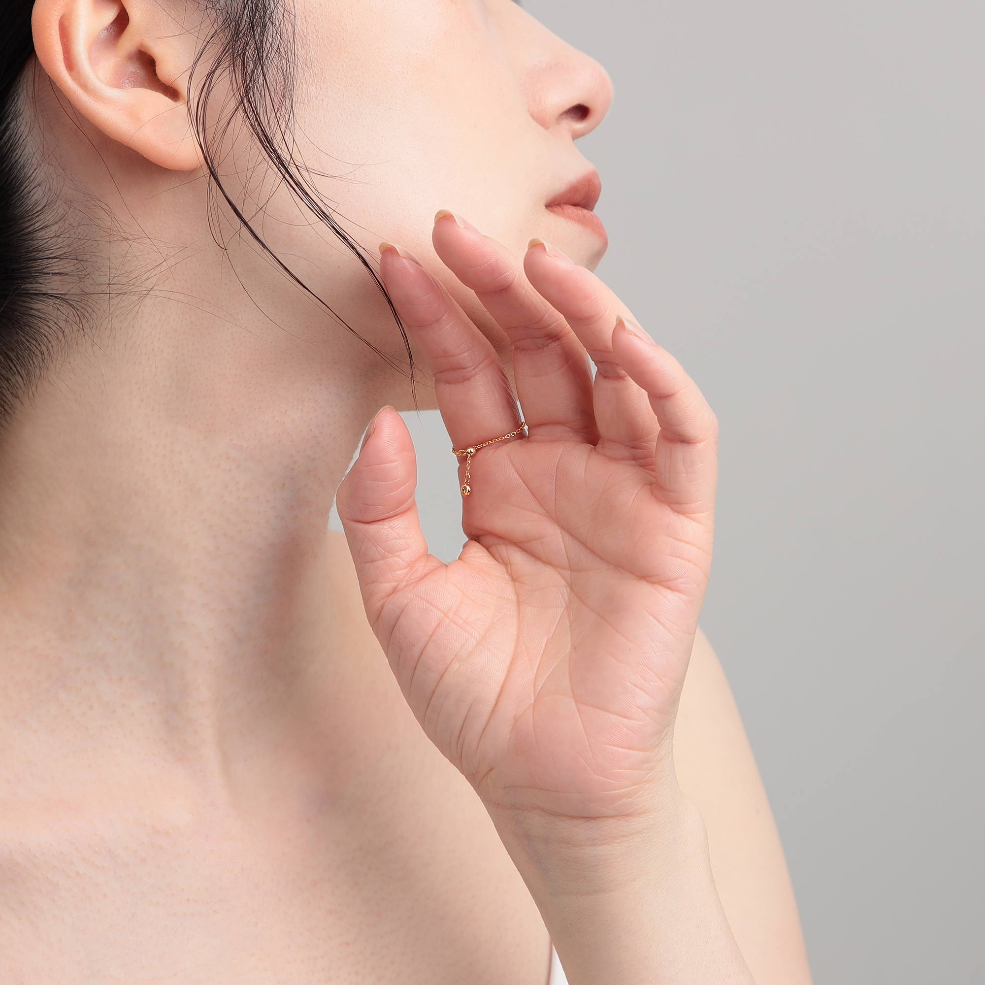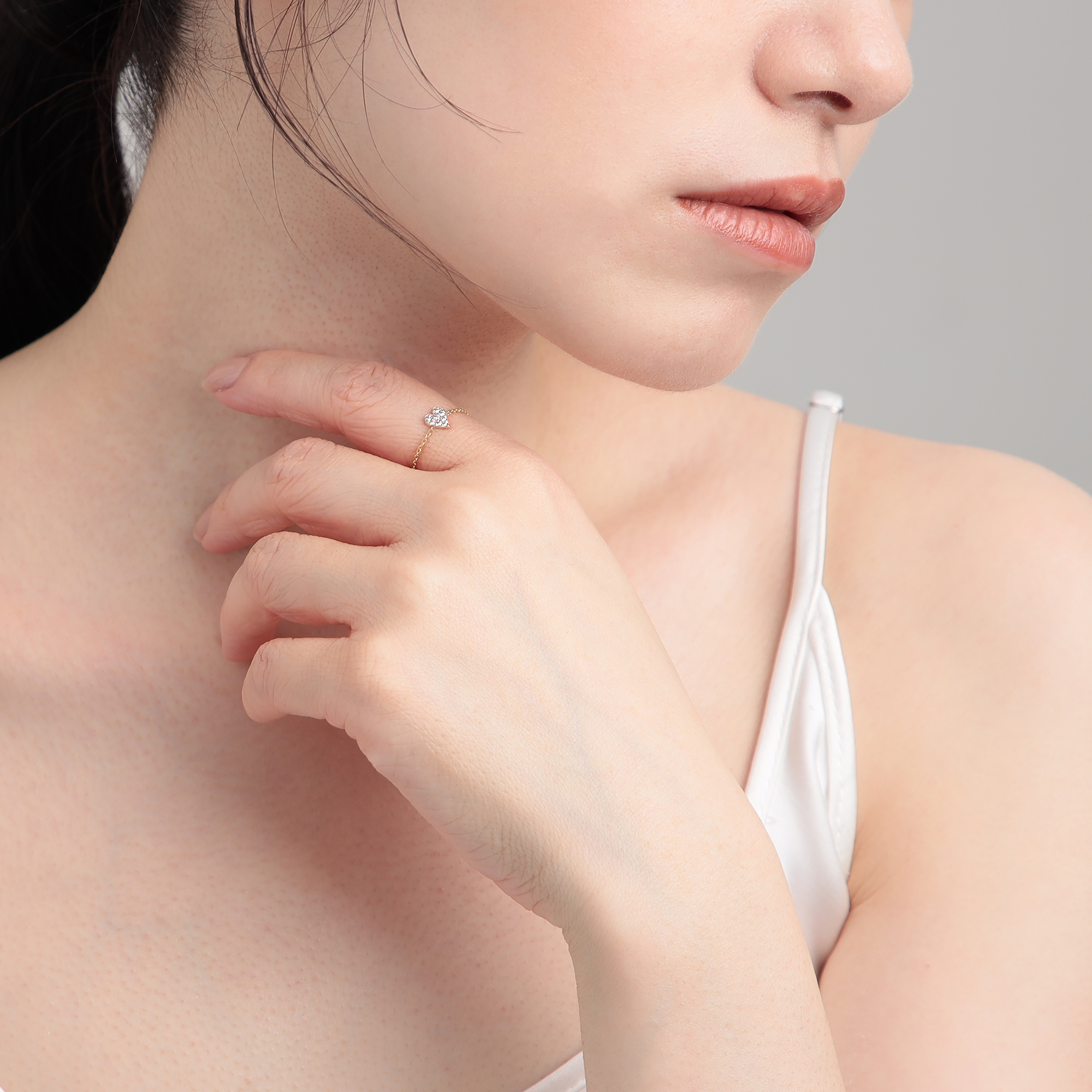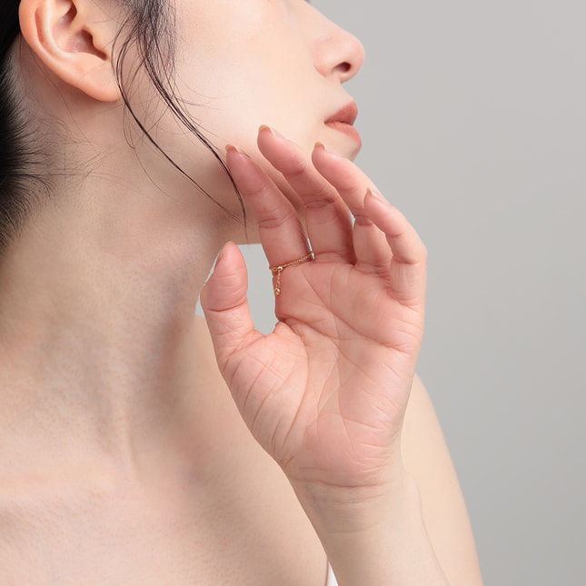 首筋や指の側面にさりげなくあしらわれた