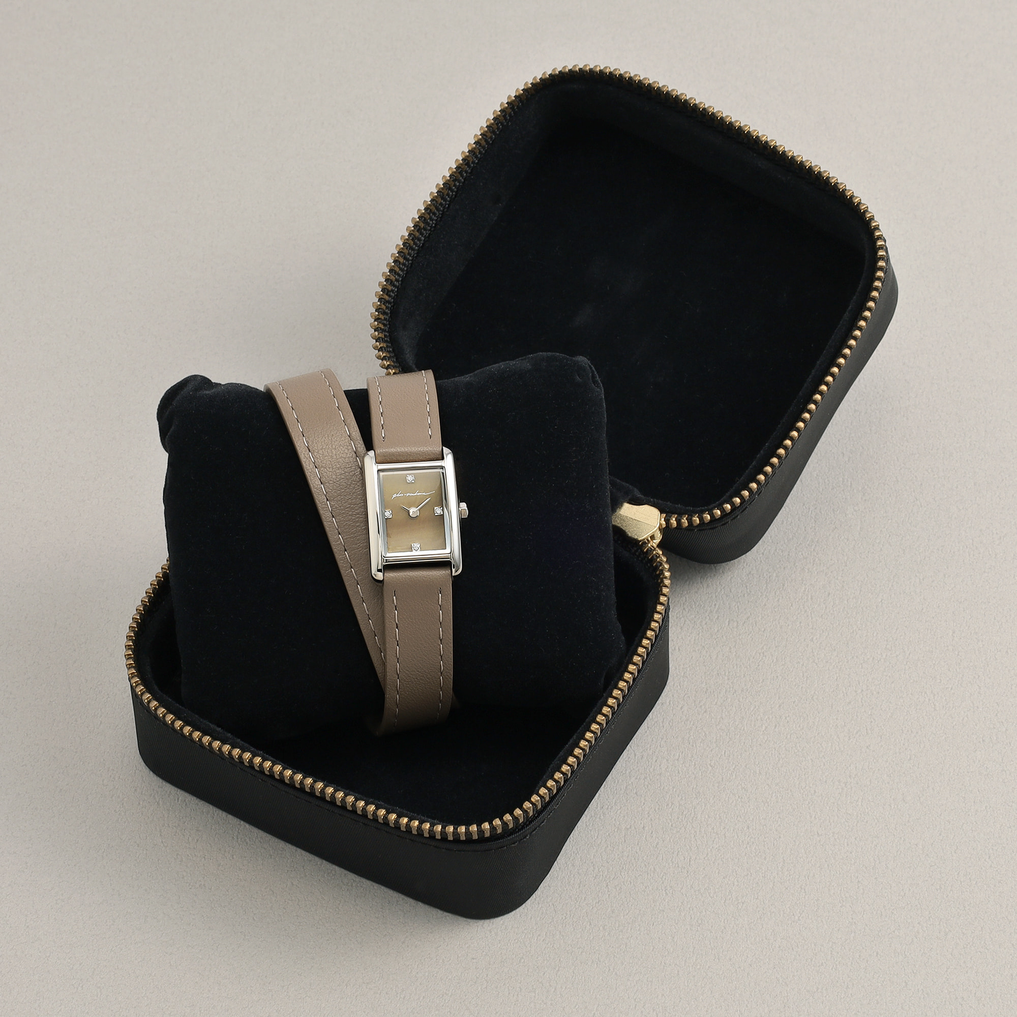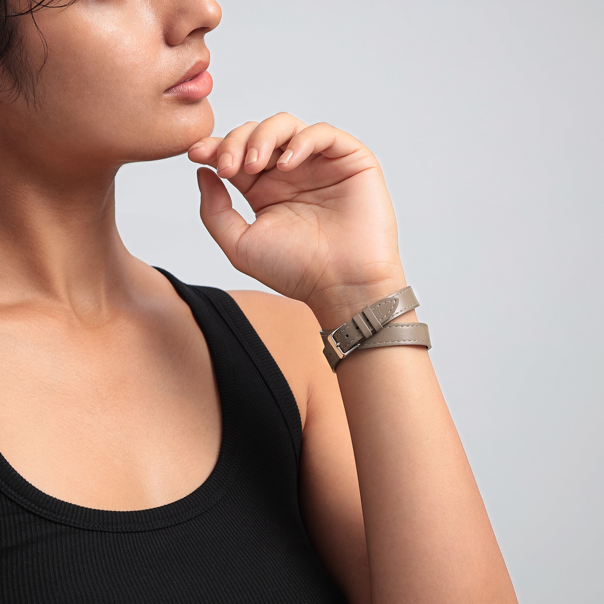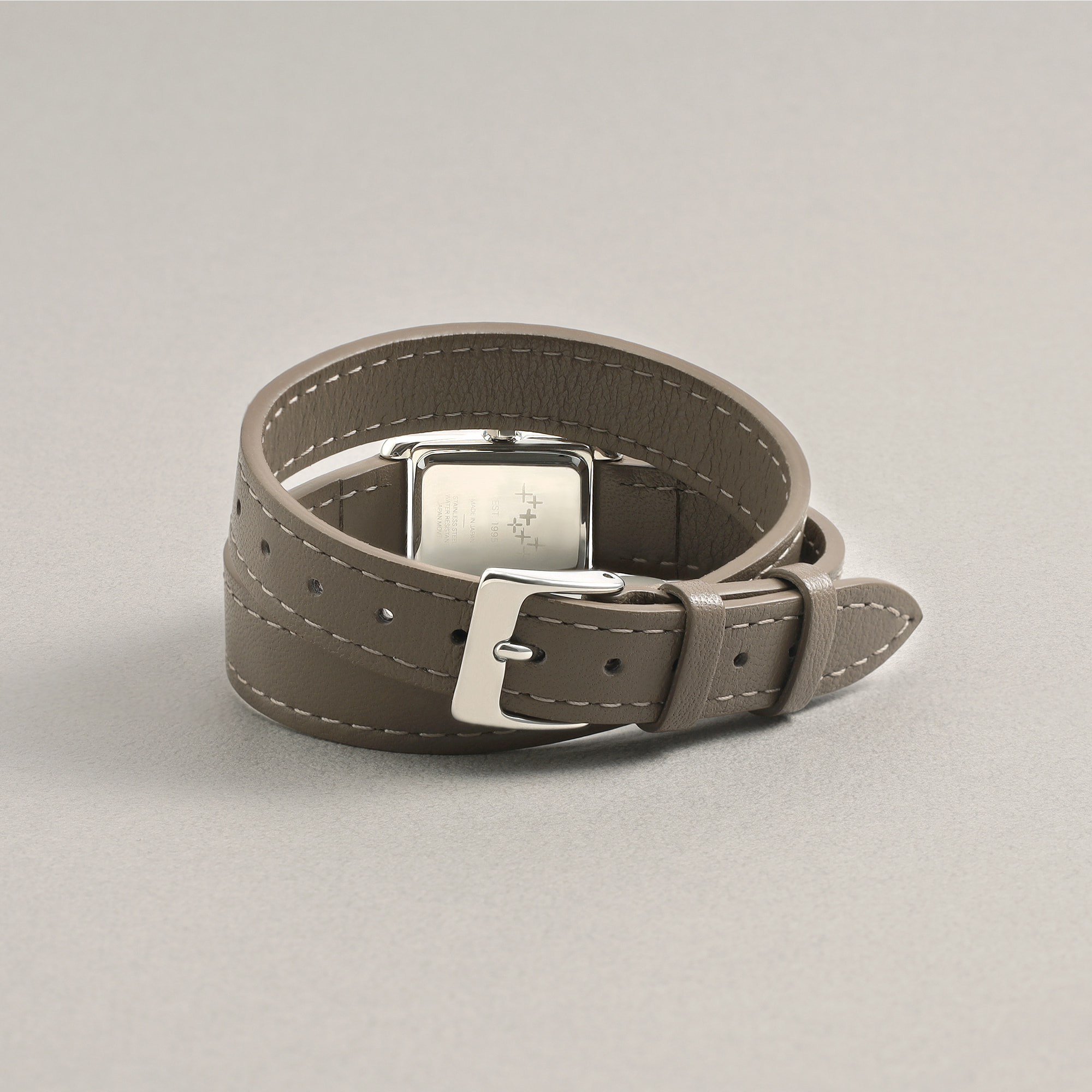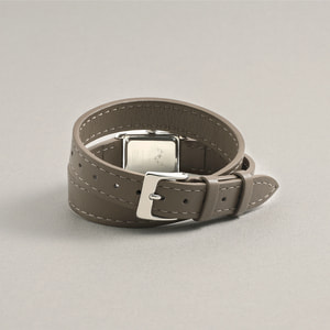 グレージュのイタリア製本牛革のダブルストラップを取り付け