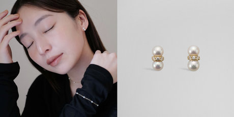 丁寧に選び抜かれた天然素材のアコヤパールを用い、キュービックジルコニアの繊細なラインストーンでつないだ優美なデザインで、第1弾、第2弾で登場した人気のブレスレットとコーディネートしていただけます。