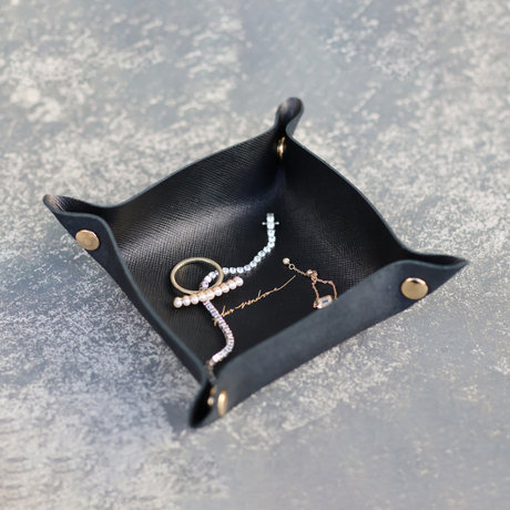ブランドロゴ入りジュエリートレイは、本革を使用したこだわりの仕上がり。
