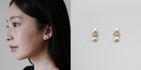 コラボレーション第三弾は、アコヤパールと細い線のタトゥーをモチーフにした「FINELINETATTOO」コレクションをミックスしてデザインしたピアス。