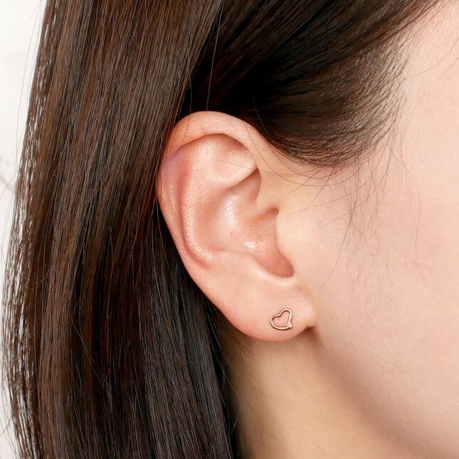 艶めくピンクゴールドカラーのハートフォルムは程よいサイズ感で上品な印象に。