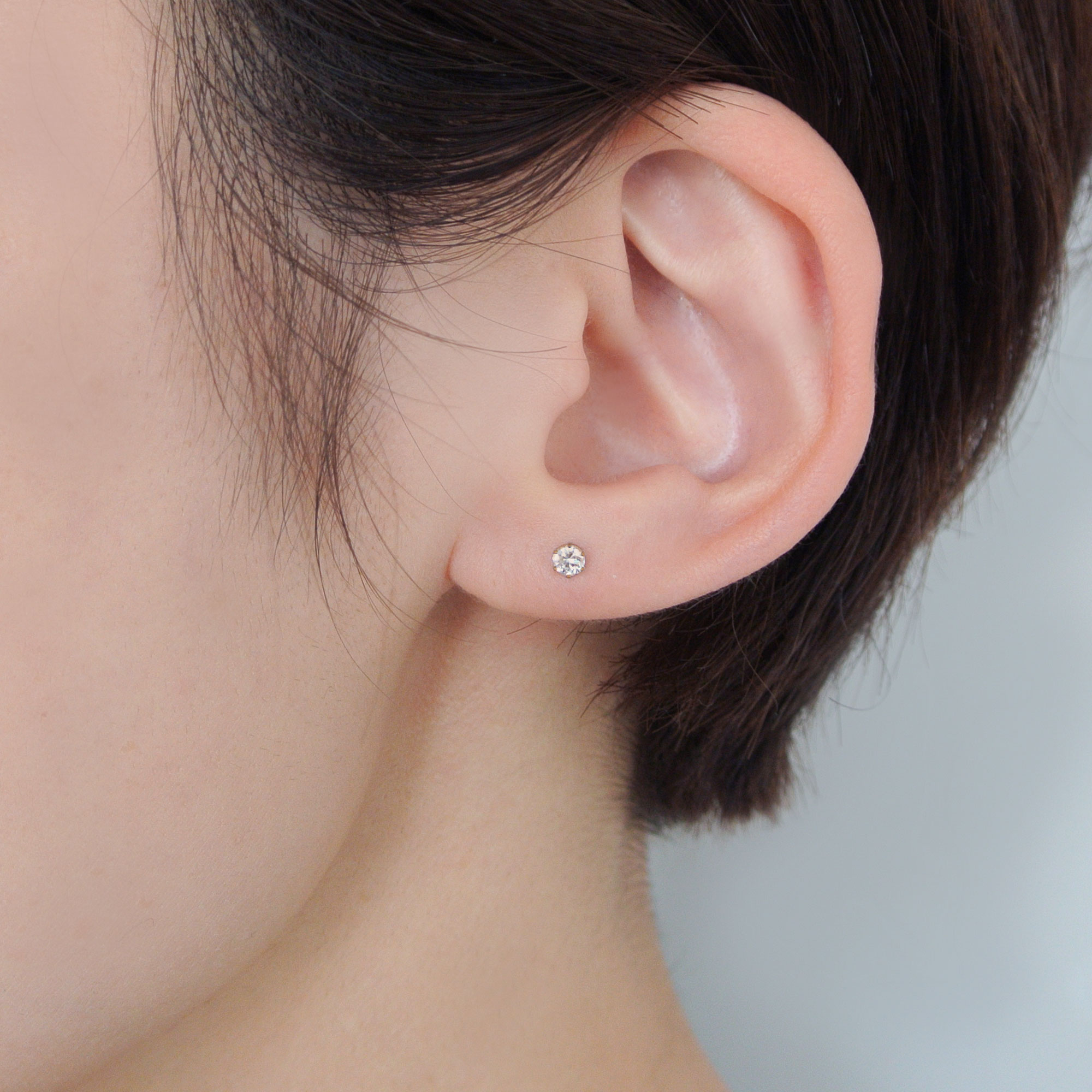 6本爪のデザインにきらめく一粒のキュービックジルコニアが美しいピアス。