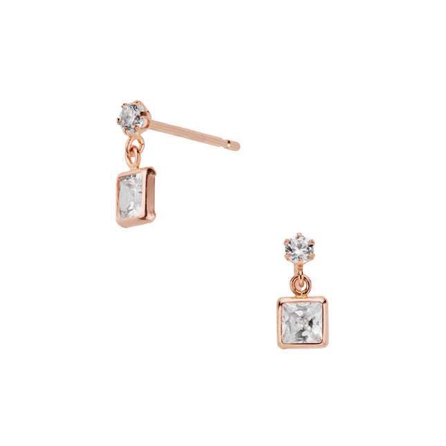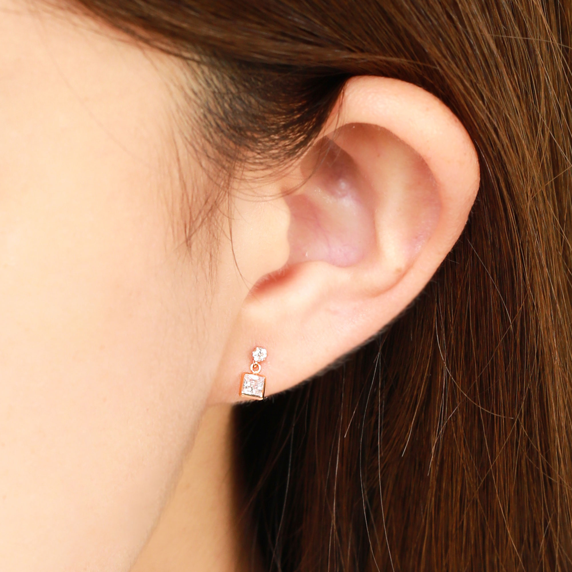 スクエアカットのキュービックジルコニアが軽やかに揺れるピアス。