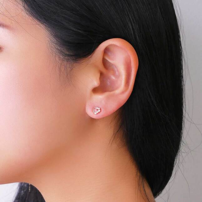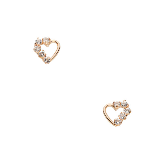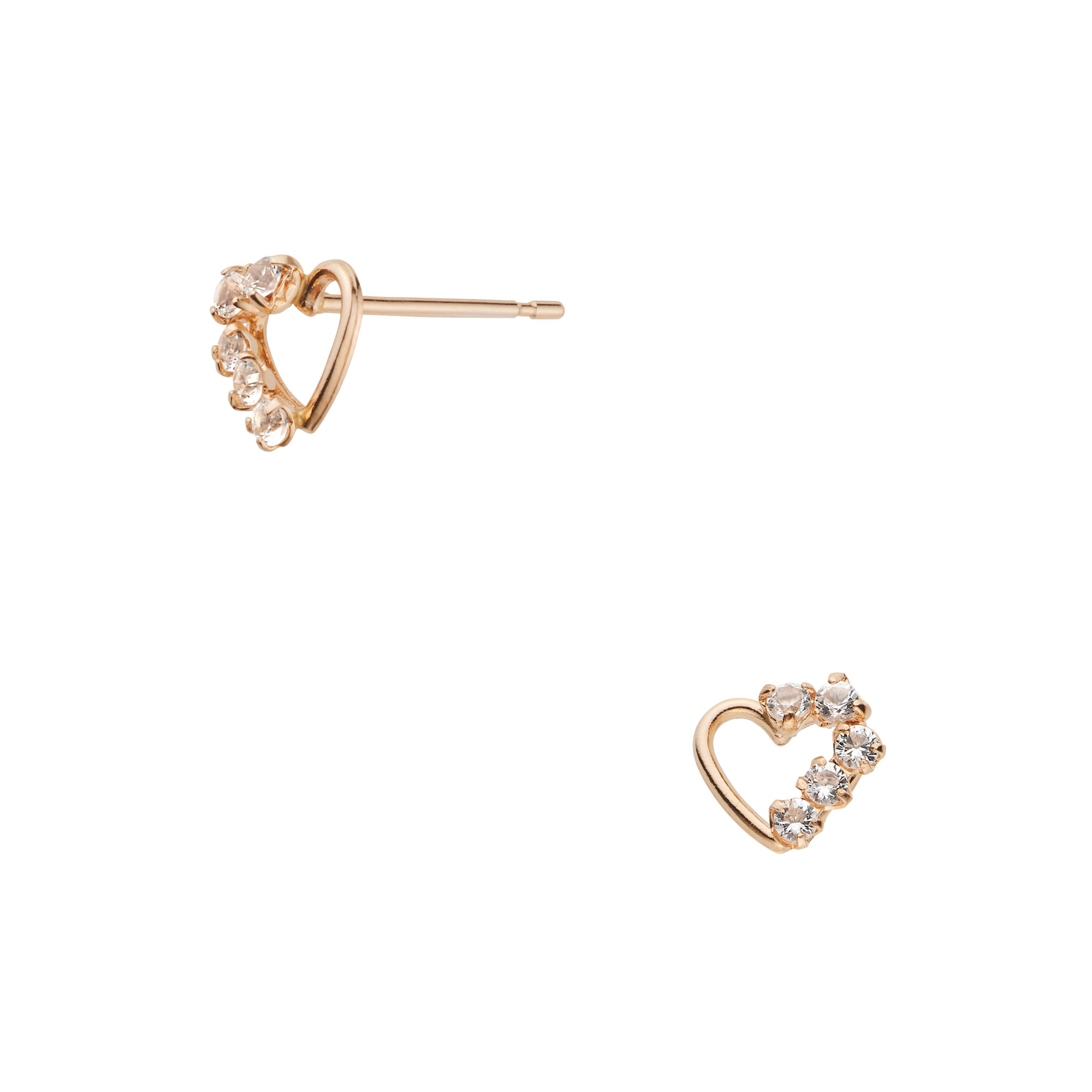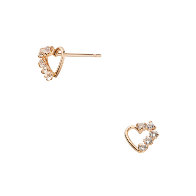ピンクゴールドのハートにホワイトトパーズをあしらった優しく女性らしい印象のスタッズピアス。