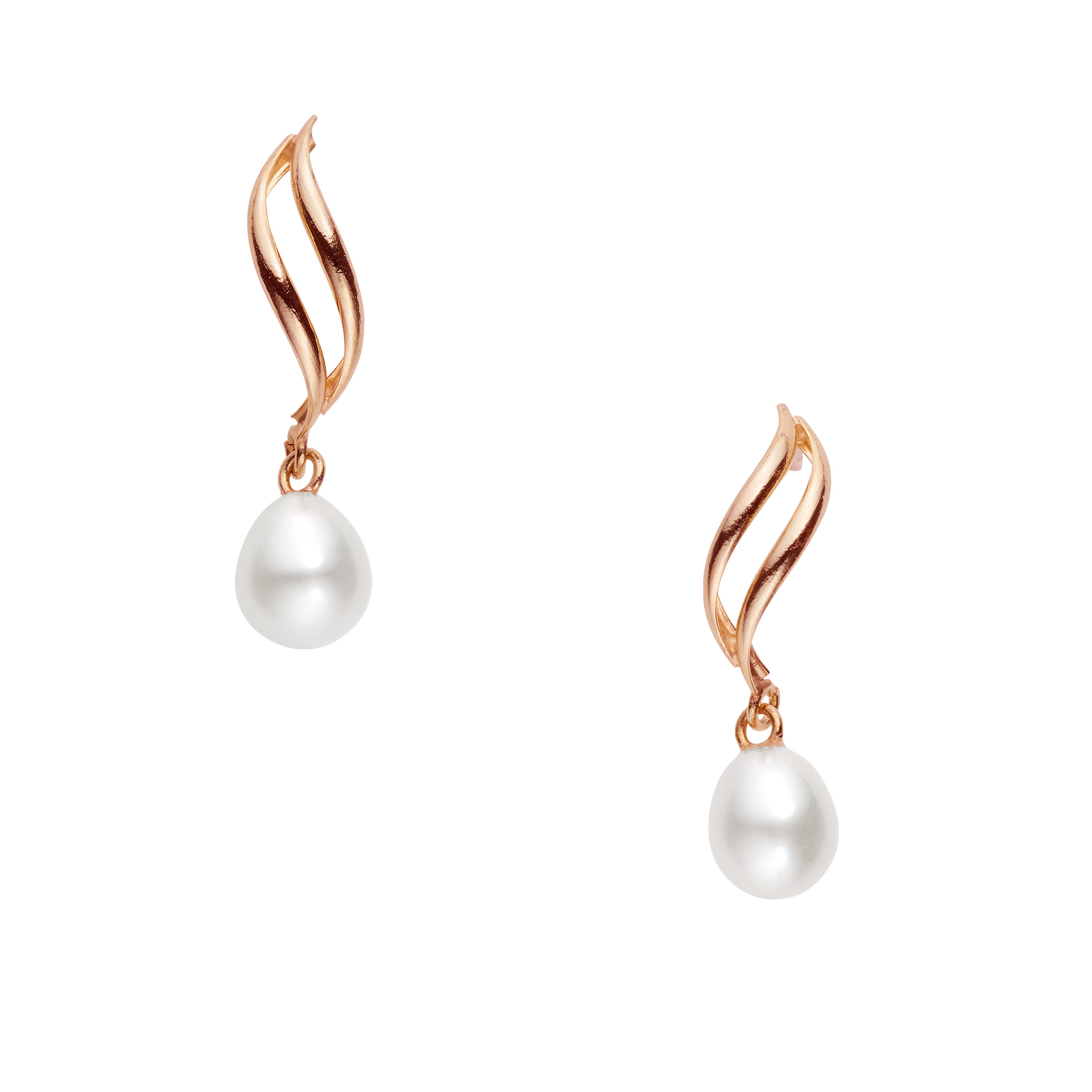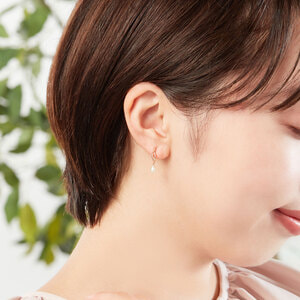 2本の細いラインの先端にセッティングされたパールが可憐に揺れるピアス。