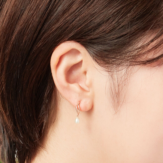 可憐に揺れるパールは女性らしく、耳元を華やかな印象に。