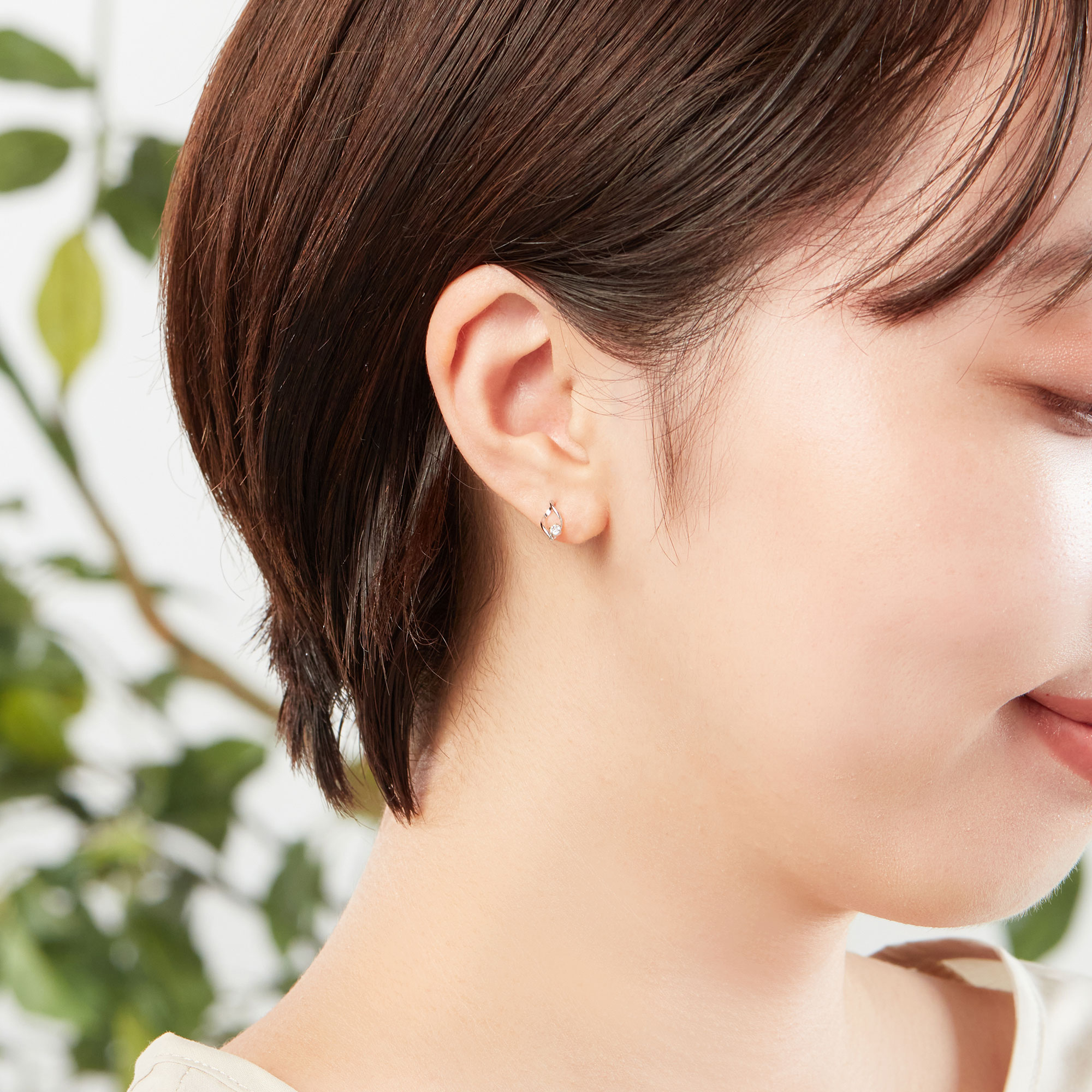 花びらをイメージした地金のデザインにホワイトトパーズをセッティングし、瑞々しい輝きが楽しめるデザインに。