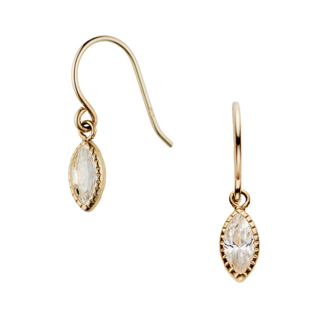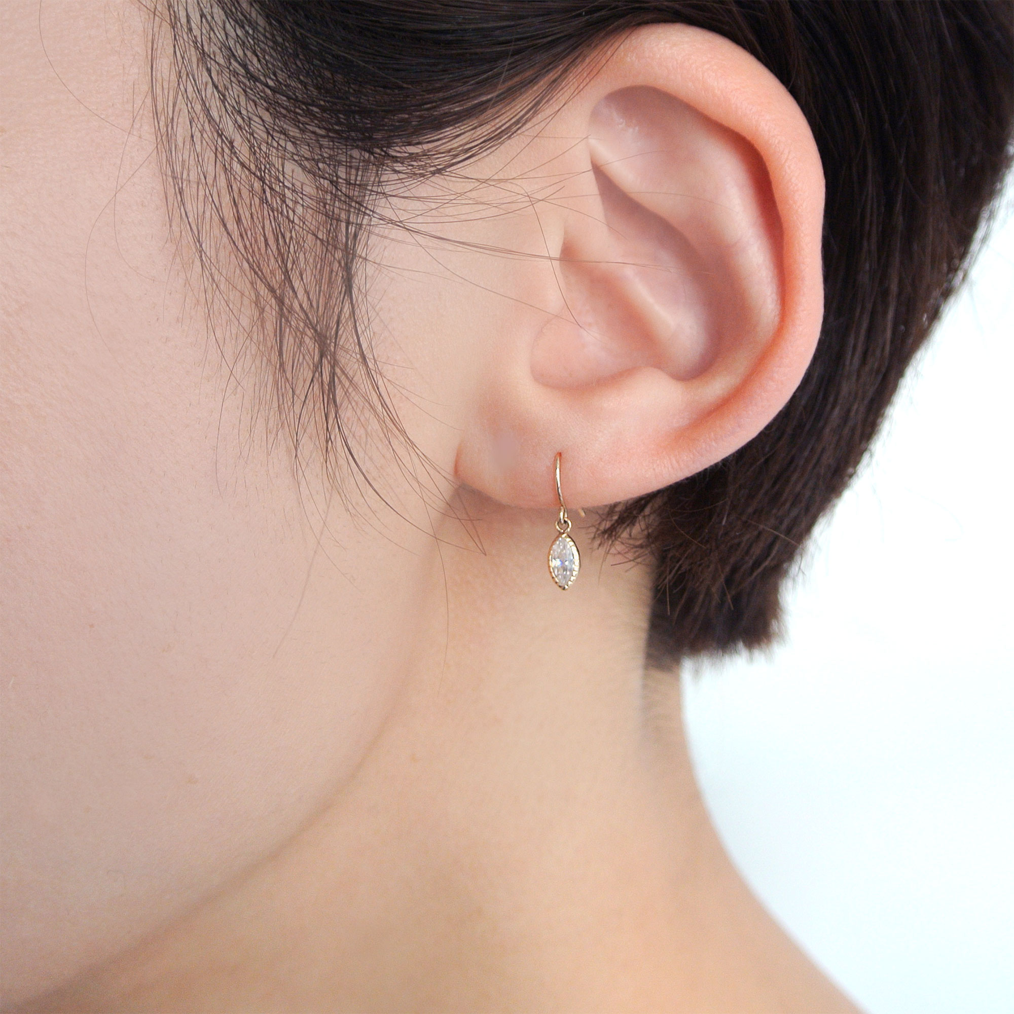 艶やかなイエローゴールドで描かれた葉の中に、透き通る氷のようにクリアなキュービックジルコニアの輝きが美しいピアス。