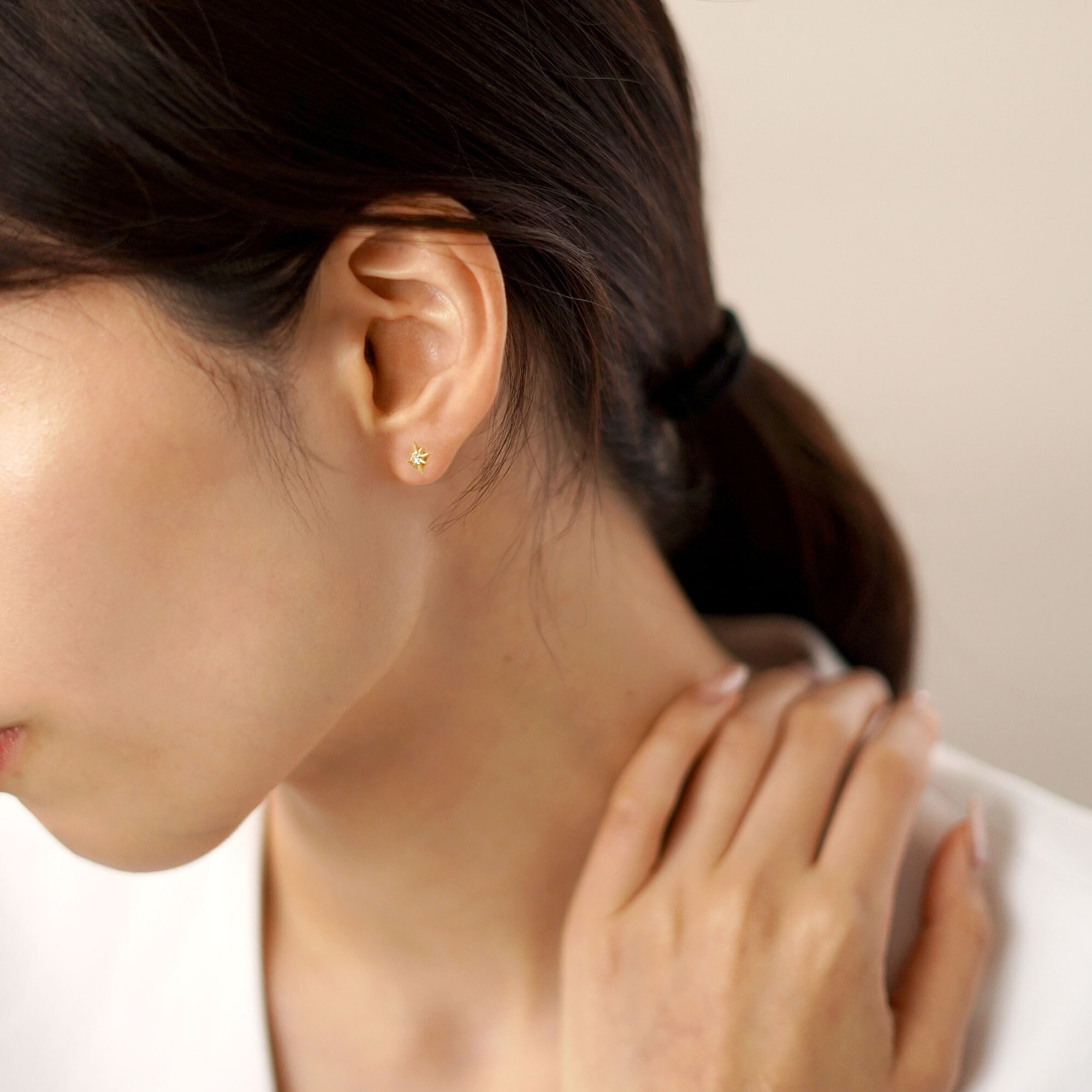 スターをかたどったゴールドに、ダイヤモンドがきらりと輝くスタッドピアス。