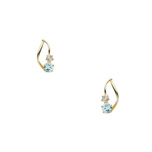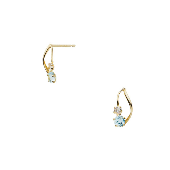 軽やかなイエローゴールドのラインにスカイブルートパーズとホワイトトパーズをあしらったピアス。